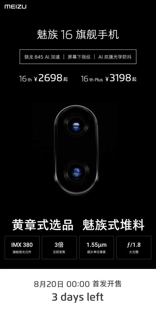 6GB和8GB运存以及64GB、128GB存储空间。魅族16th内置3010mAh电池。