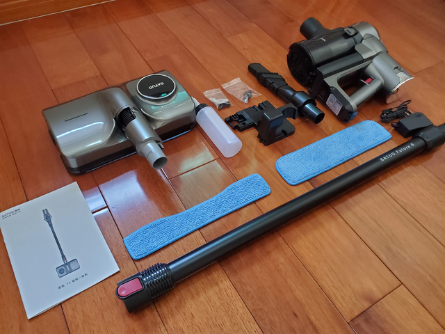 那么接下来就看看洒拖F6家用吸拖地一体机的实力到底如何吧。我先将主机与吸尘杆、清洁头组装完毕。