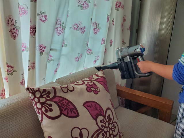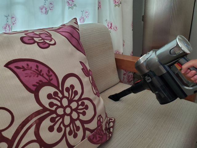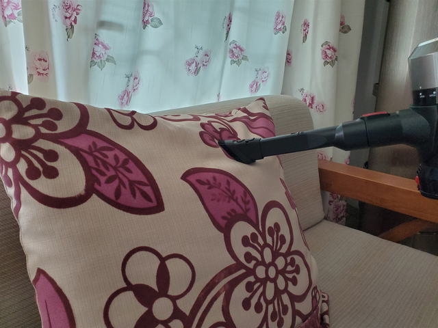 除了清洁头之外,洒拖F6还有一个二合一多功能扁吸毛刷,可以用来清洁沙发、桌面、键盘、汽车内部等。使用它来吸沙发缝隙内部的灰尘十分合适,21000Pa的大吸力可以做到不放过任何一个死角,十分优秀。