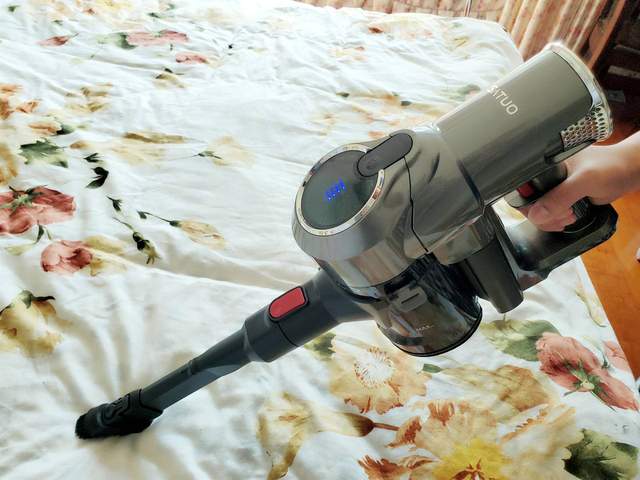 接着我在床上看了,发现一些毛发,使用洒拖F6清洁时,可以看到它也能将其一并吸走,这是因为洒拖F6采用的是环绕式3D吸尘口设计,可以在吸力强劲的同时,快速吸入灰尘、毛发,就连尘螨、花粉等看不见的物质也能一起清洁到位。