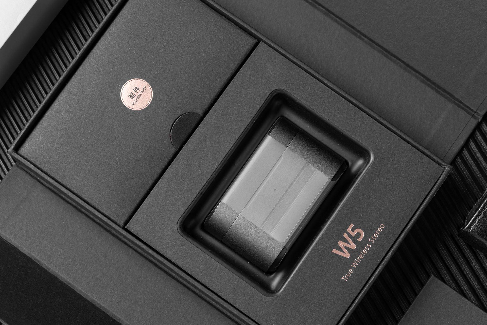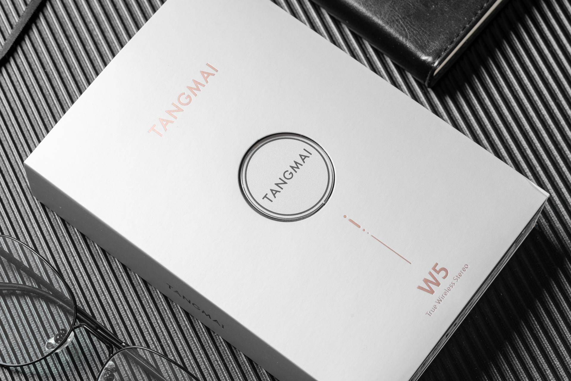 笔者也玩过不少款真无线耳机,唐麦W5的包装第一眼是奢华,外包装的设计上用心了,中部圆形烤漆唐麦logo,底部型号W5。如果你是作为一款礼品送人还是挺有档次感的。