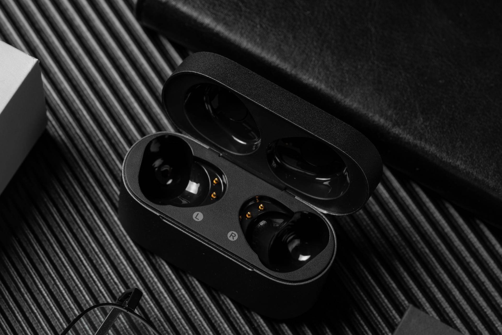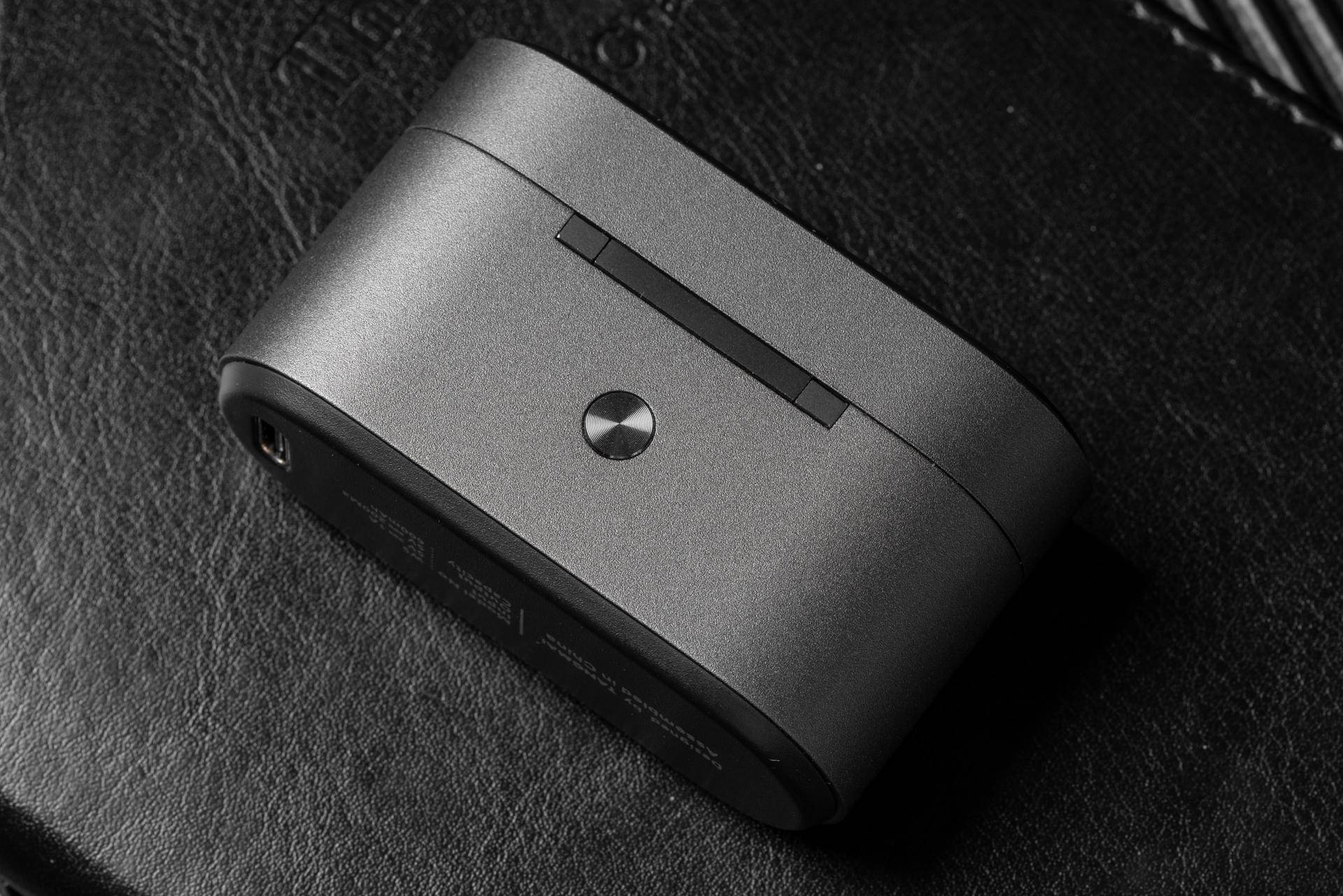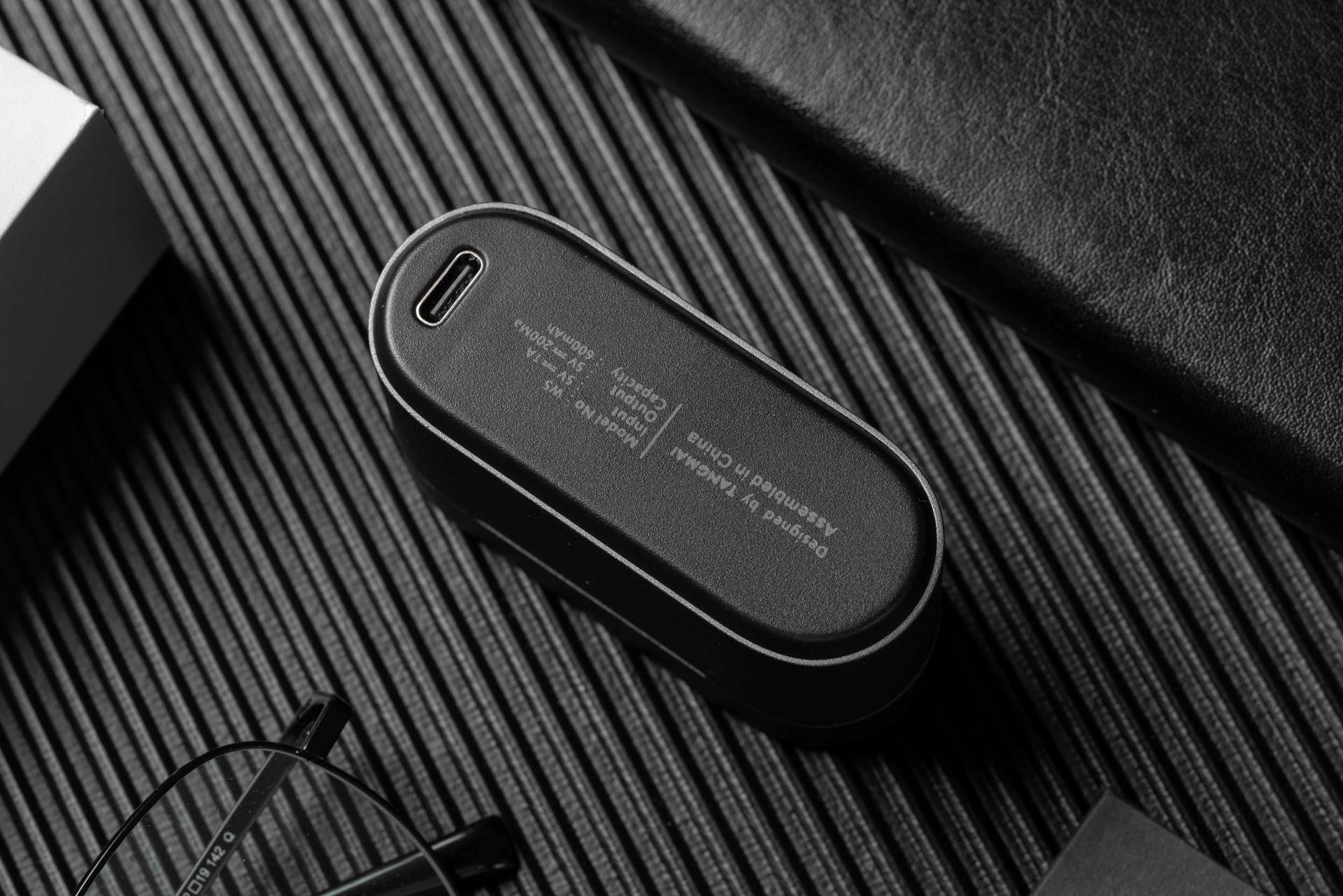 首先来看下电池仓,唐麦W5电池仓设计挺小巧的,曜影黑的色系搭配,整体呈现侧边圆润,上下线条分明,配合纯铝合金的机身材质!质感十足,光泽度诱人,这也是大部分TWS不具备的设计。