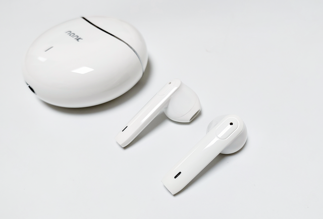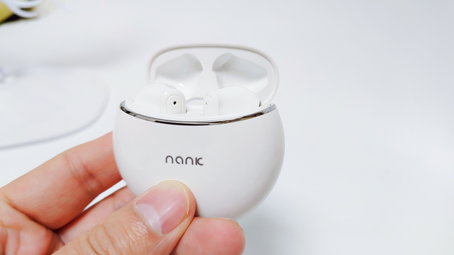 打开充电仓,南卡Lite Pro耳机的两个耳机,拿在手里相当轻,再就是半入耳设计,我们久带戴的紧实度和舒适度还是十分让人满意的。