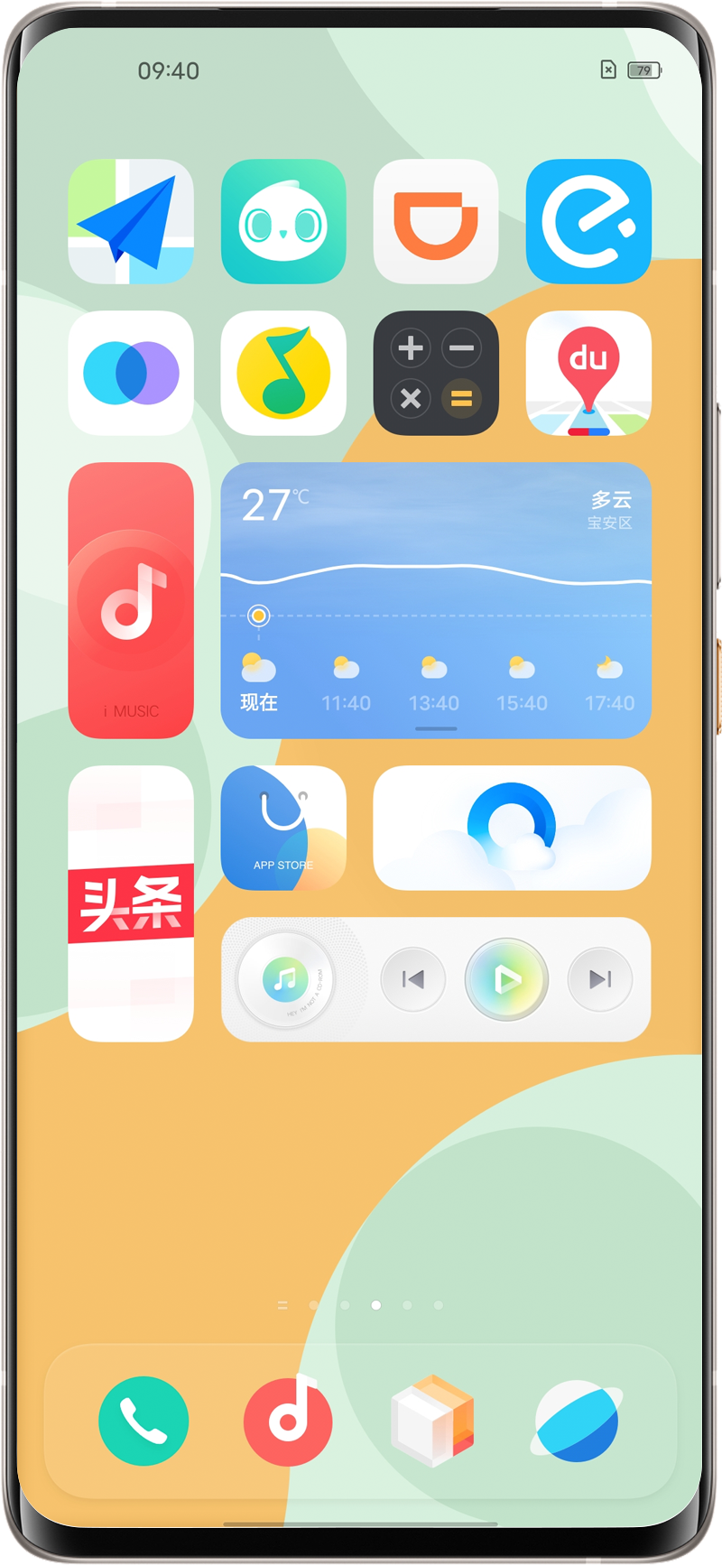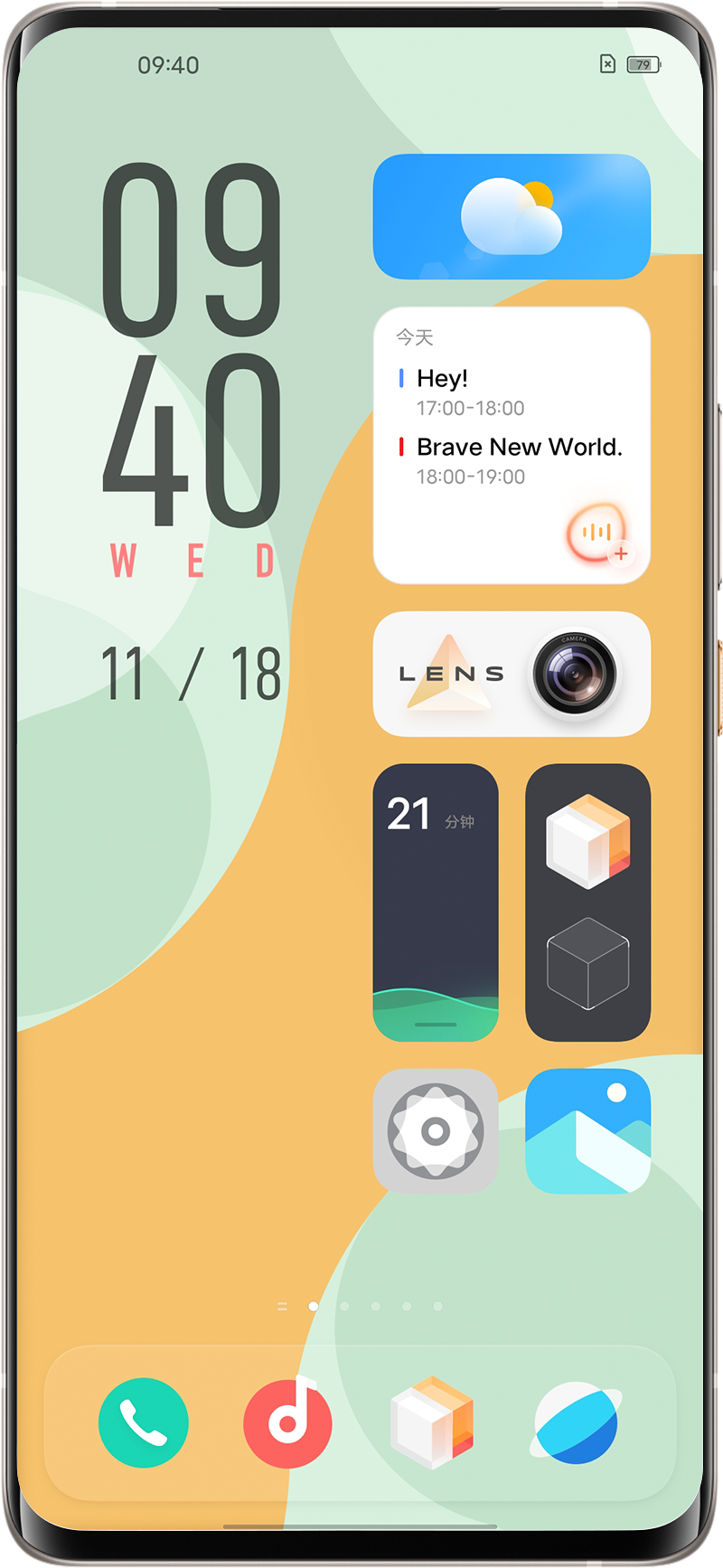 OriginOS首创了全新的桌面架构体系“华容网格”,重新排布桌面元素,比过去更加整齐、高效。在新的桌面体系下,“原子组件”能够从最小的桌面单位出发,决定通知内容的呈现方式和系统功能的交互方式。在OriginOS的全新架构中,通知体系重新进化,在不同时间,帮助用户提取核心信息;与此同时,音乐等常用功能的交互逻辑也被整合、提取、浓缩,聚焦到最核心的功能体验。