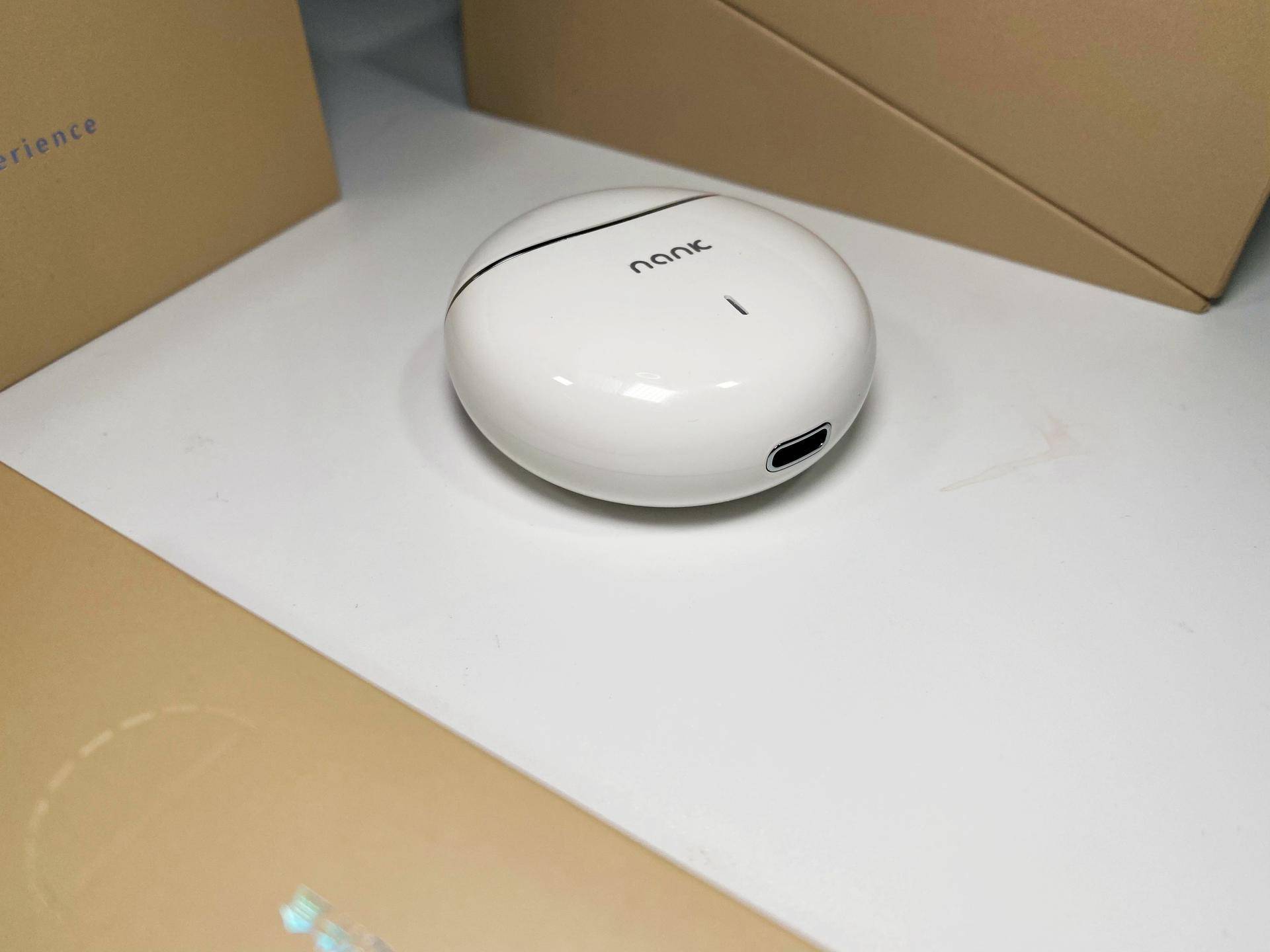 仓盖设计有霍尔开关,打开仓盖同时就可以自动开机完成连接,不必等待耳机取出。不过不知这次南卡是否有意为之,仓盖的开关力较小,只要稍稍向前倾斜机身就可以关闭仓盖。