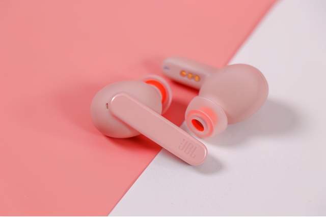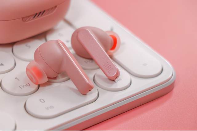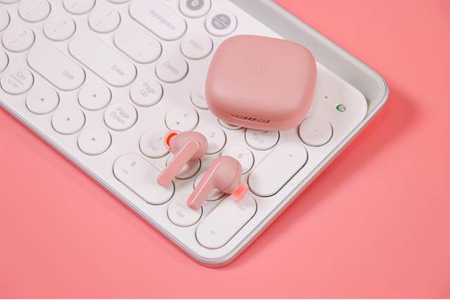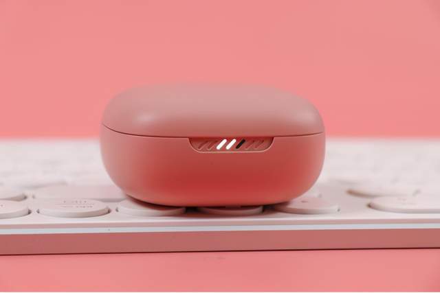 初见JBL LIVE PRO+TWS时,工位旁边小姐姐表示非常喜欢她的淡雅的粉色设计,不张扬而又小清新,官方把这颜色称为清灰粉。充电仓比较小巧,重量只有49.5g,将仅有两颗5g的耳机放入后,也不会有坠手感,配合磨砂的哑光材质,手感和精致感都得到了保证。