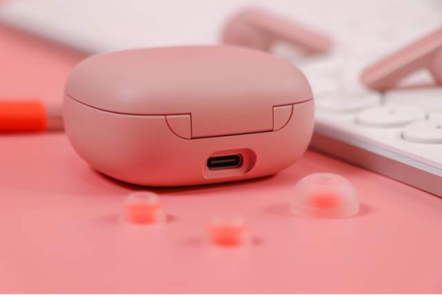 耳机本体的造型与主流TWS耳机一致,采用了入耳式设计,其中在机柄侧面采用了与机身不同的材质,能够让滑动、点按操控更自然。机柄也采用了棱角分明的设计,相较圆柱形设计更具辨识度,喜欢与否就看个人了。由于轻至5g的单耳重量,在佩戴时时几乎感觉不到它的存在,同时自带的耳套也比较亲和皮肤,一些比较挑材质的人也能使用,不会出现过敏、不适等问题。
