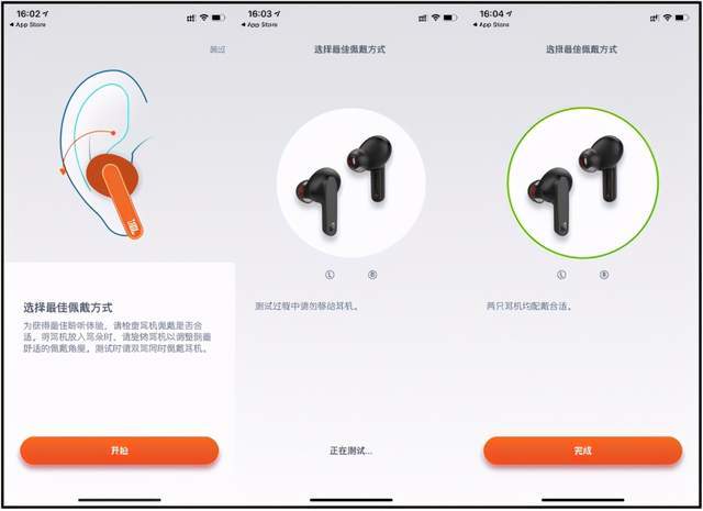 在使用JBL LIVE PRO+TWS时,建议与【My JBL Headphones APP】搭配使用,搭配起来有这几个优点。首先在刚开始佩戴时,与APP连接后,会有“耳机贴合密闭测试”功能,能够检测耳塞套规格是否贴合耳廓大小,防止在运动时出现掉落,以及能让降噪和听音效果更好。
