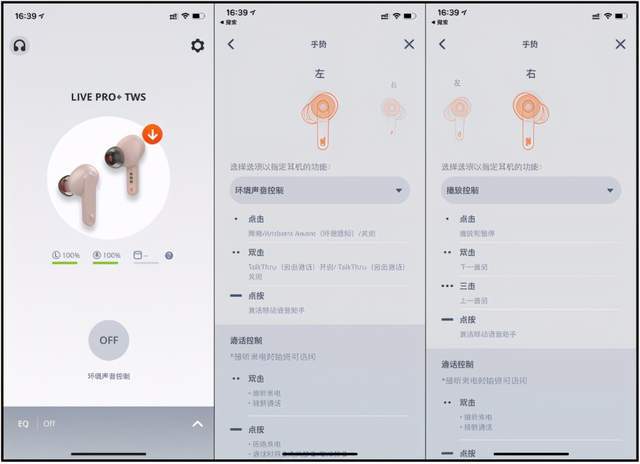 同时还能在APP中自定义触控操作,例如左边耳机单击可切换主动降噪、环境感知等,右侧耳机单击暂停或者播放;双击可设置成切换歌曲或者接听/挂断电话,长按唤醒语音助手等,可根据自己的需求进行调整,比较智能化。此外,像大多数TWS耳机的摘下耳机自动暂停、重新佩戴自动续播这样的功能它也同样具备。