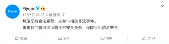 对此,魅族官方第一时间回应称:“魅族坚持合法经营,未参与相关非法事件。未来我们将继续深耕手机安全业务,保障手机信息安全。”