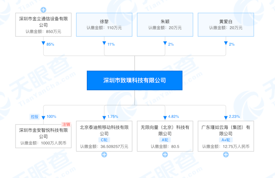 天眼查APP信息显示,深圳致璞科技有限公司成立于2014年6月,法定代表人为徐黎。
