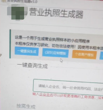 雷达财经调查发现,在有关“58、智联、前程”的交流QQ群中,有卖家出售名为“营业执照生成器”的应用程序。据该卖家介绍,只需输入企业信息,选择模板,就可生成营业执照,且该执照“亲测”可通过58等平台的认证。