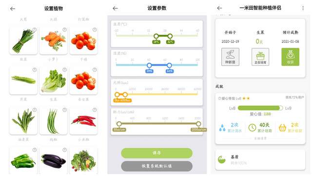 可以通过米家APP选择自己种植的植物种类,在设置植物界面已经内置了很多蔬菜种类,如果没有适合的,还可以通过选择其他植物,自己设置参数,调整到合适的数值,更有利当前植物的生长。