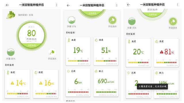 智能化的另一方面,是可以通过“米家”APP进行远程操作,数据很直观,温度、湿度、光照、肥力等,通过APP就可以直接查看。如果温湿度低于设置的参数,手机上还会收到推送。不仅能够自动浇水,还可以手动进行浇水。