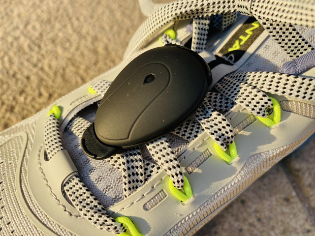 既然是联名款,当然是少不了咕咚的数据记录和分析了。将咕咚精灵绑在鞋子的左脚即可开启科学跑步模式。