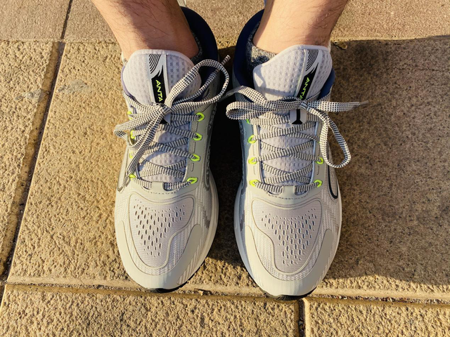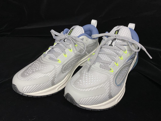 一双跑鞋吸引人的第一要求就是设计得漂亮!安踏创跑鞋分别出了男款和女款跑鞋。少荣这双是灰色系的男款跑鞋。整个鞋面以灰色网面为主,采用升级的4-WEB弹性呼吸网材料,温柔地包裹着双脚。而内里则采用蓝色与鞋面形成撞色,很有个性。鞋口的海棉填充到位,对于脚踝处的保护恰到好处。整个鞋面设计透气性不错,长时间跑步也不怕汗脚、捂脚。
