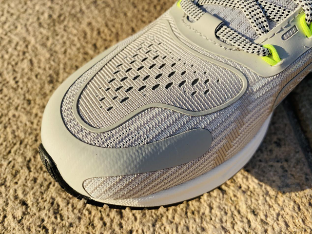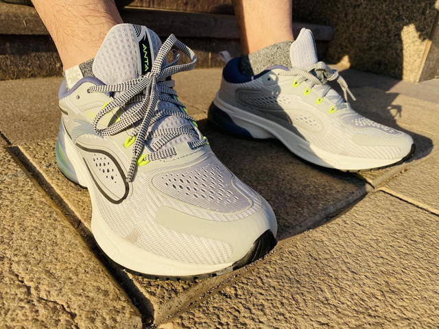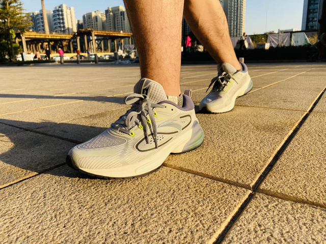 为了更好地体验这款跑鞋的减震效果,少荣特地选取了小区和跑道上进行体验。上脚的第一感受就是舒服合脚!小区内的水泥地面比较硬,如果是穿普通的运动鞋跑步,脚掌落地时会觉得有点硬,冲击力较大,需要花费较大力气跑步。而少荣穿上这款安踏创跑鞋以后进行跑步,明显能感觉到回弹力不错,冲击力变小,整个脚掌会处于一种舒适的状态,变得更为轻盈快捷。这是因为它采用了发泡橡胶外底设计,不仅能吸收冲击力,还具有一定的抓地力和防滑性,舒适安全。