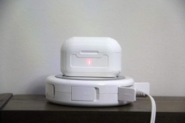 南卡T2充电仓依然采用的是Type-C充电口,这点一直是南卡真无线耳机的优点,保持得很好。不过这次南卡T2还跟上了时代潮流,跟高端手机一样,支持无线充电,因此充电仓在设计时,底部采用了平面设计,方便平稳放置在无线充电盘上充电。