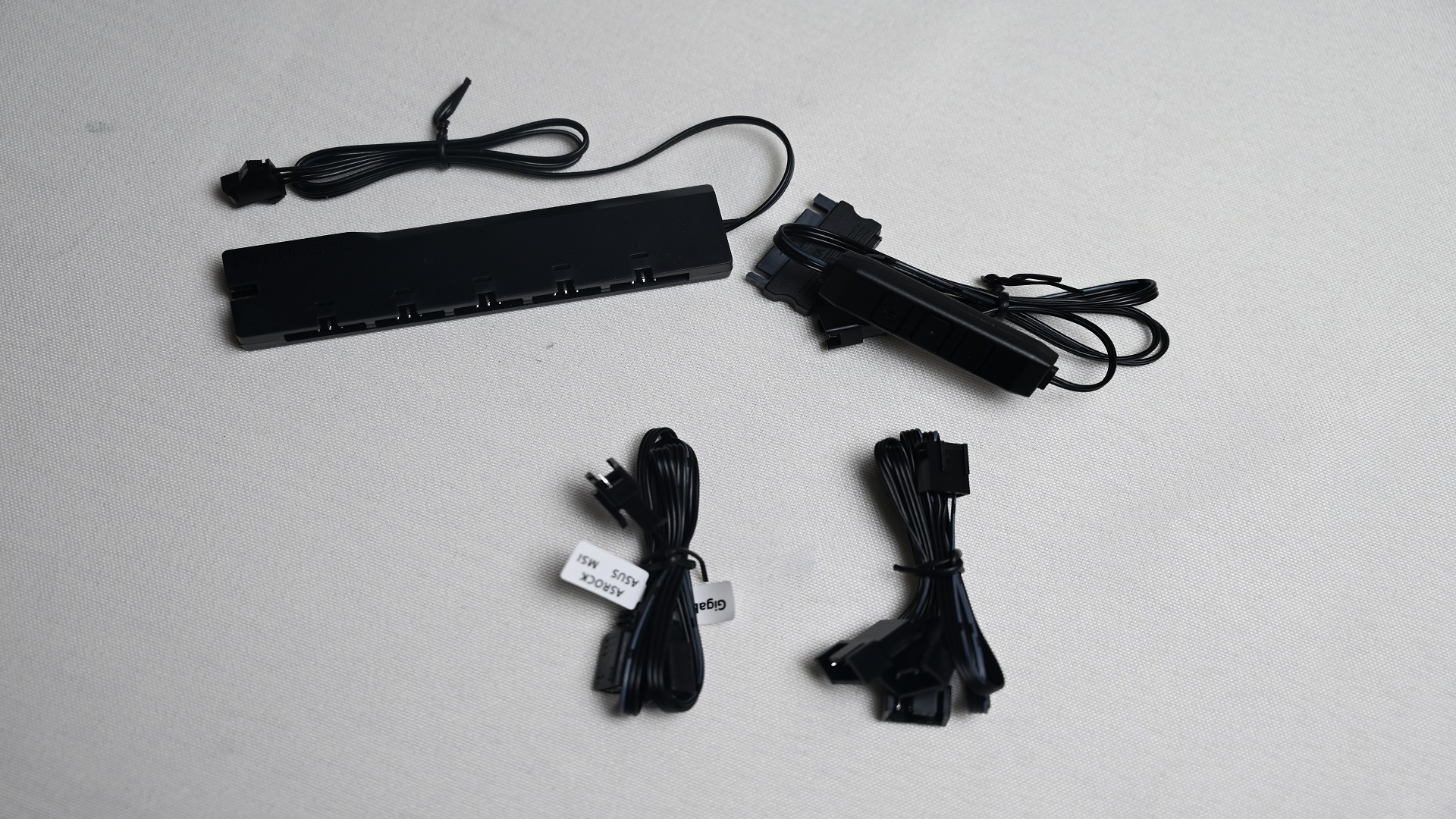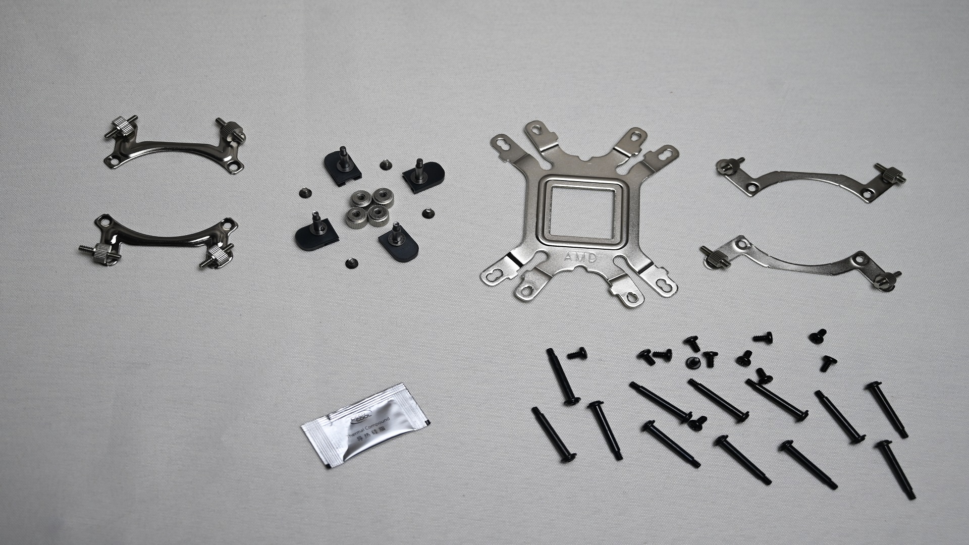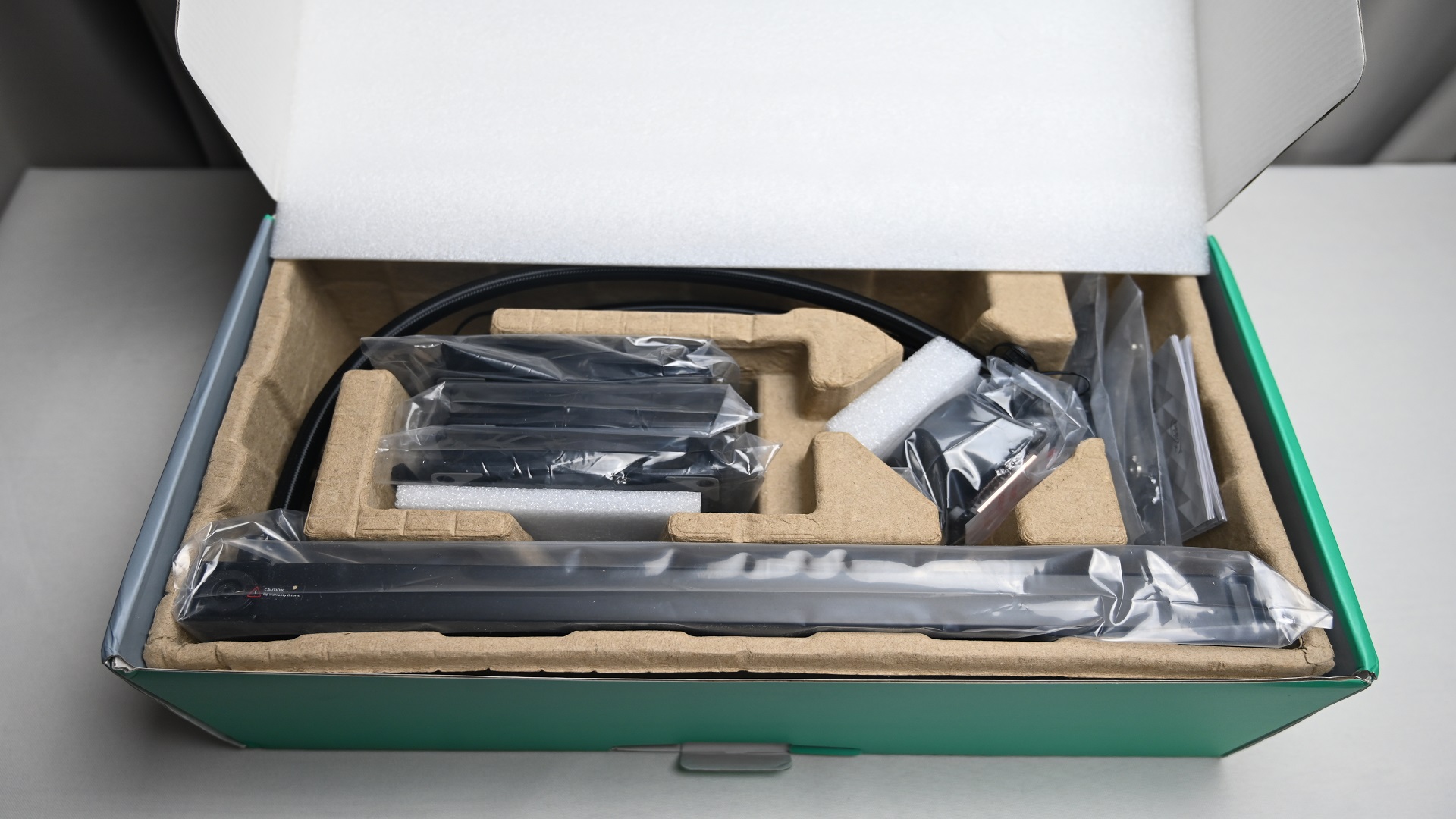 里面的配件有 水冷本体 扣具 说明书 3个RGB风扇和风扇集线期。