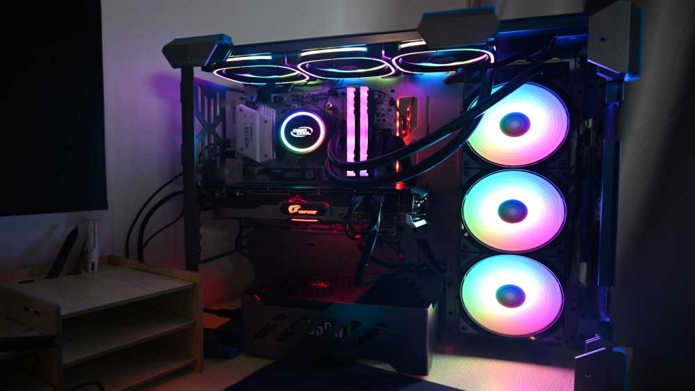 这RGB爱了爱了!水冷灯光配合灯条和显卡灯光我只能说太好看了!