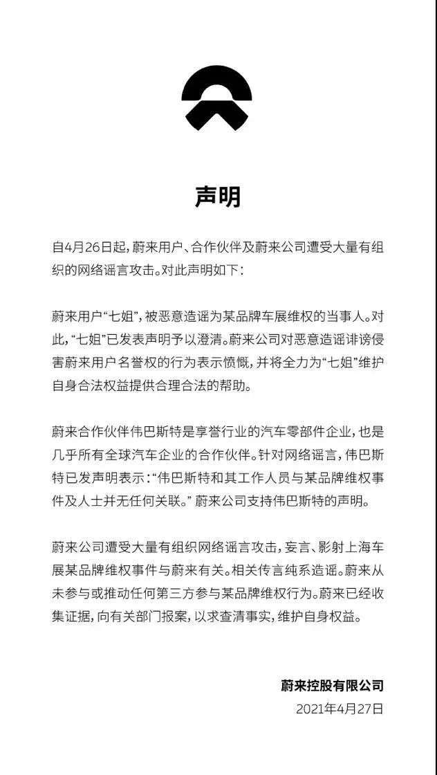 ,伟巴斯特也发文称,经上海车展主办方和公安机关调查证实,伟巴斯特属于在正常工作范围内使用媒体日单日通行证,伟巴斯特和其工作人员与某品牌维权事件及人士并无任何关联。伟巴斯特对造谣影响公司形象的行为保留采取法律措施的权利。,同时,特斯拉车顶维权女车主张某发布微博称,关于媒体日通行证,我是实名申请,并且由车展工作人员带领下进入会场,光明正大,合理合法。,她指出,车展前一日抵达上海,乘坐过特斯拉维权车友的某来汽车,他同时是某来和特斯拉的车主,而自己仅仅是乘坐过车辆而已,并不能代表乘坐过哪个品牌的车,就是维权事件的支持者,这是无稽之谈更是欲加之罪!,对于特斯拉频频出现的“刹车失灵”事件,不乏权威媒体发声评论,甚至建议对特斯拉停产停售整顿。此前经济日报发表评论性文章《“特事”特办,依法特办“叫停”特斯拉已刻不容缓》,改文章指出,频频发生的事故表明“特斯拉刹车失灵”已非个案,甚至不排除这是特斯拉车辆的共性问题。在事故原因尚未查明之前,相关主管部门应责令特斯拉立即停产、停售整顿,以确保道路交通安全,进而消除社会公众的恐慌。,4月26日晚间,特斯拉针对此事再次发布微博致歉,称得到车友买奶茶安慰。,