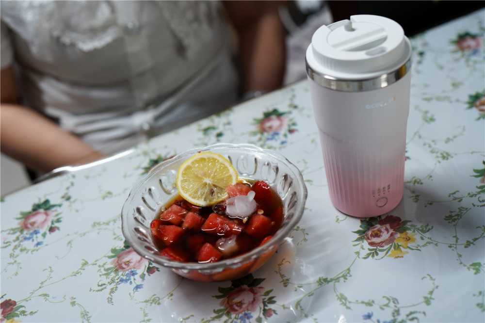 最后再为水果茶的食材上面加入少许的蜂蜜,这样能够中和可感,还会有一些蜂蜜带来的花香,大家按需加入即可。圈厨便携式奶茶机煮好花茶之后,会自动关闭工作状态,打开杯盖时候注意不要被热气烫伤手。