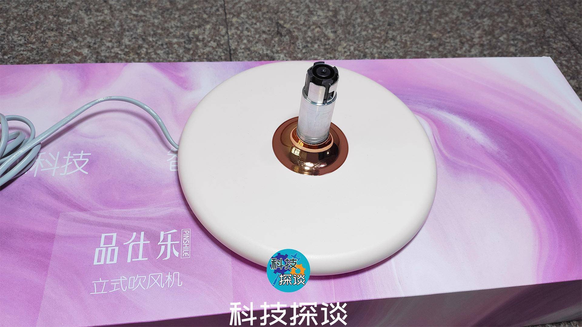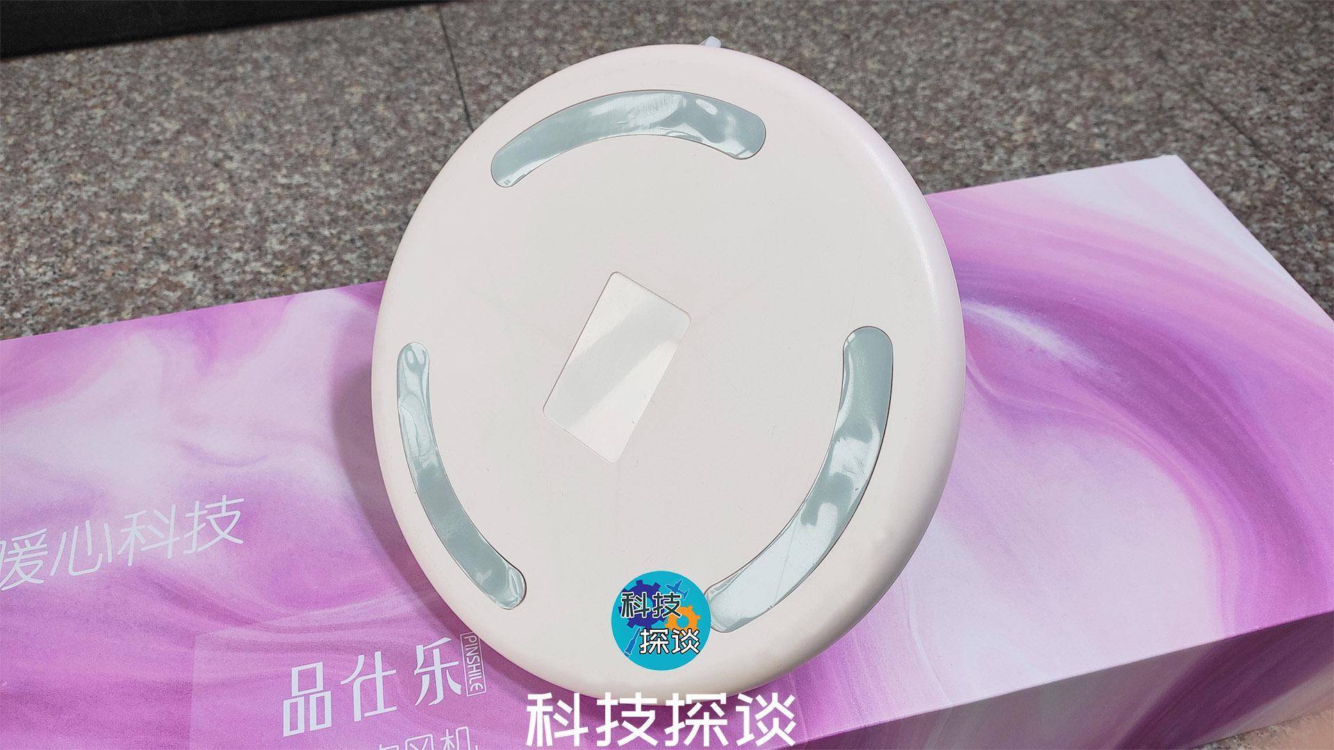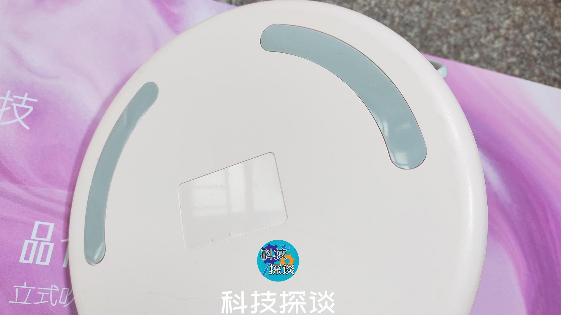 它的底盘直径约24厘米,厚度2厘米,重2.6公斤,尾部拖着160厘米长的两头电源线,除了沉甸甸的底盘,为了防滑在底盘下还有三瓣防滑软垫。