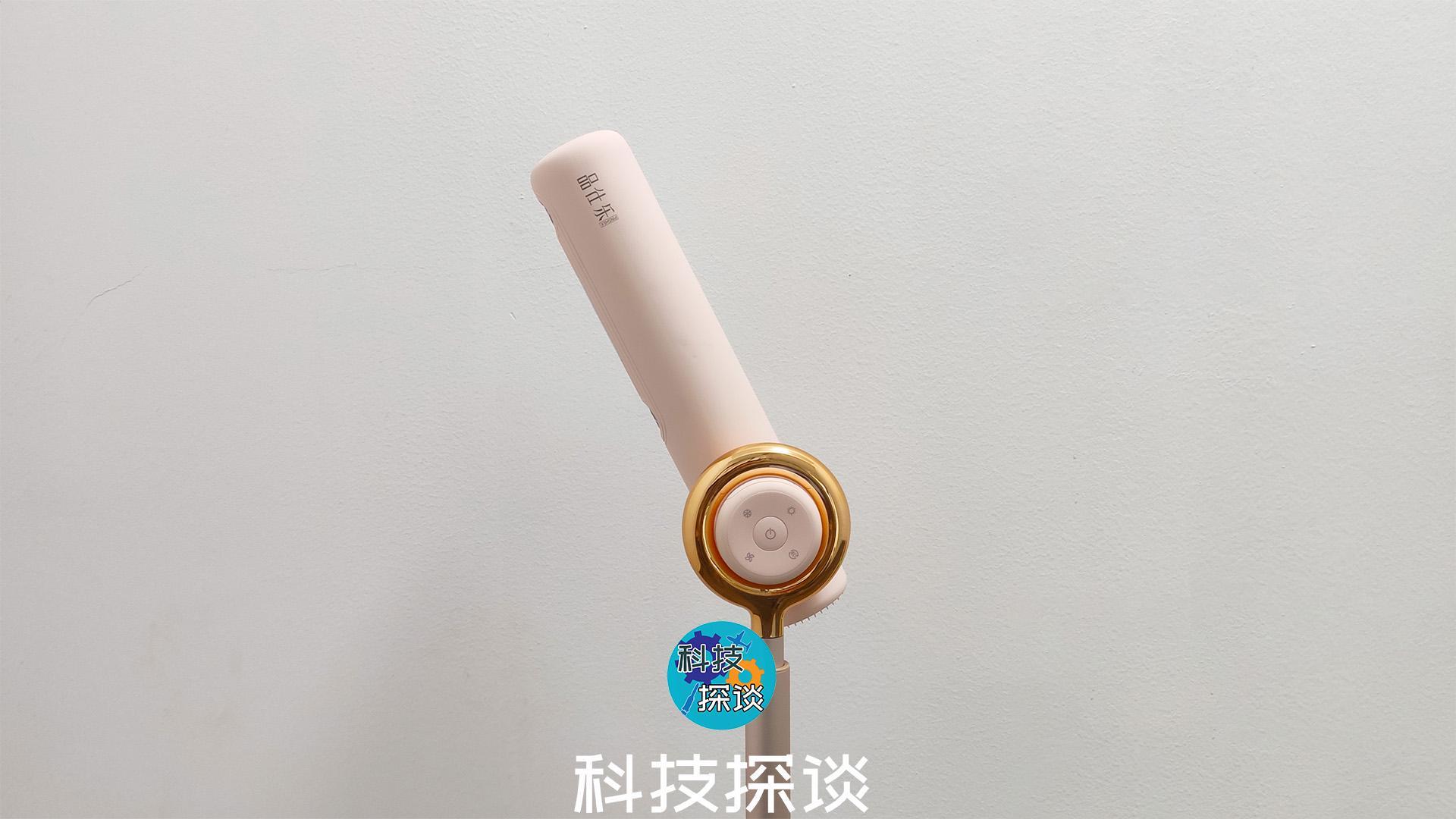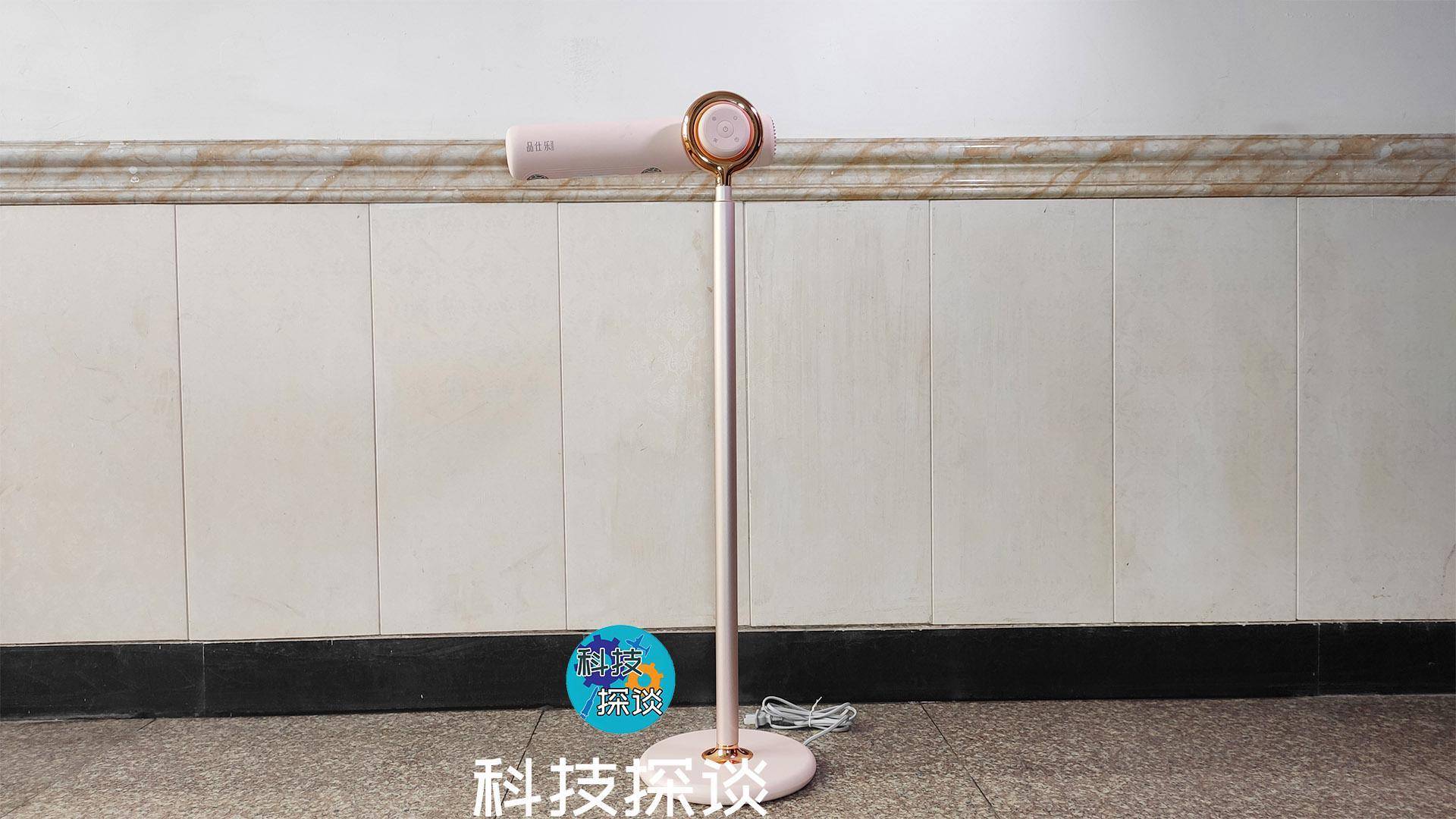 品仕乐立式吹风机未伸长时的杆长约73厘米,管直径约3厘米,由铝管材制成,表面经过阳极氧化处理,金属质感强烈。