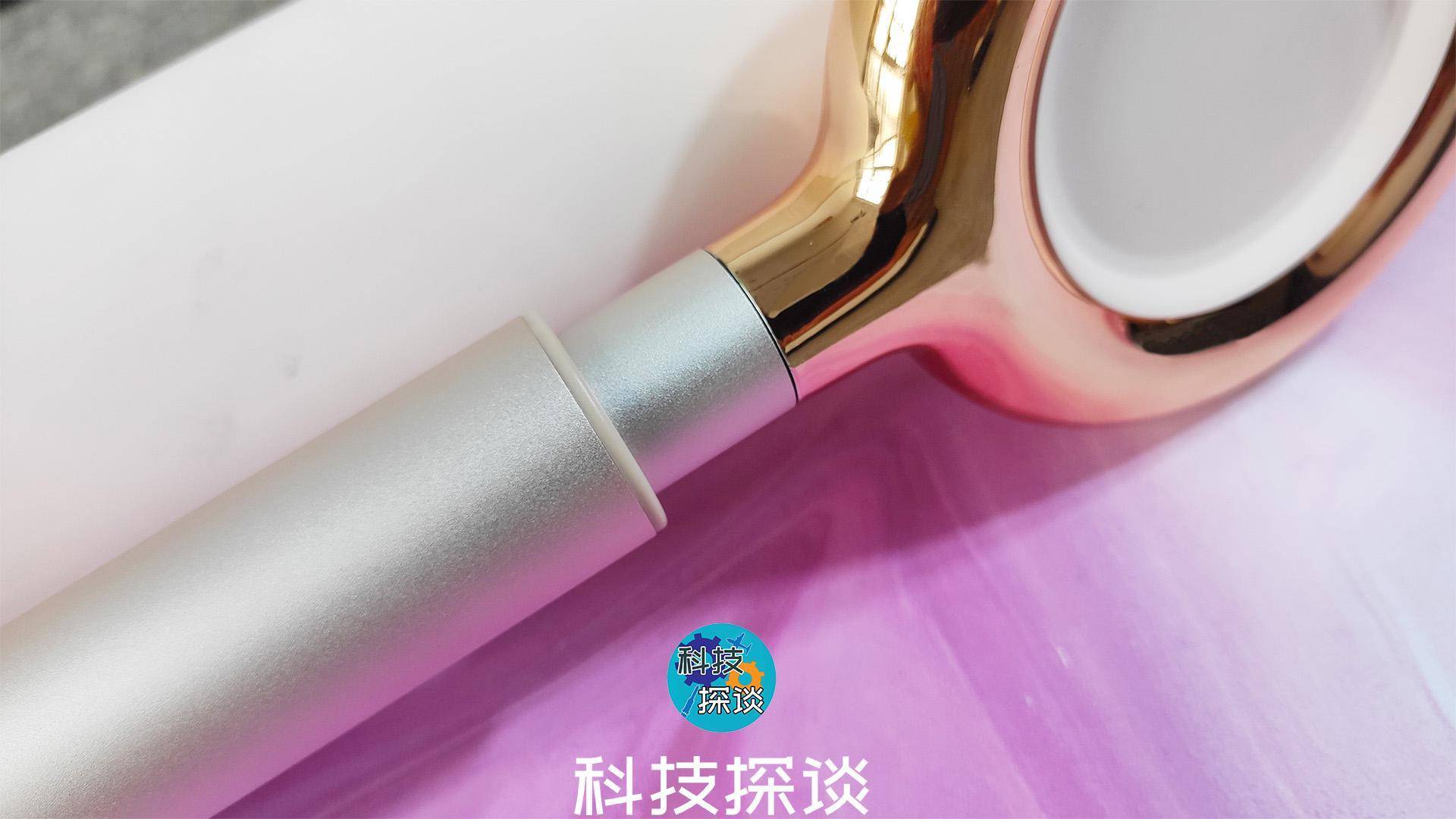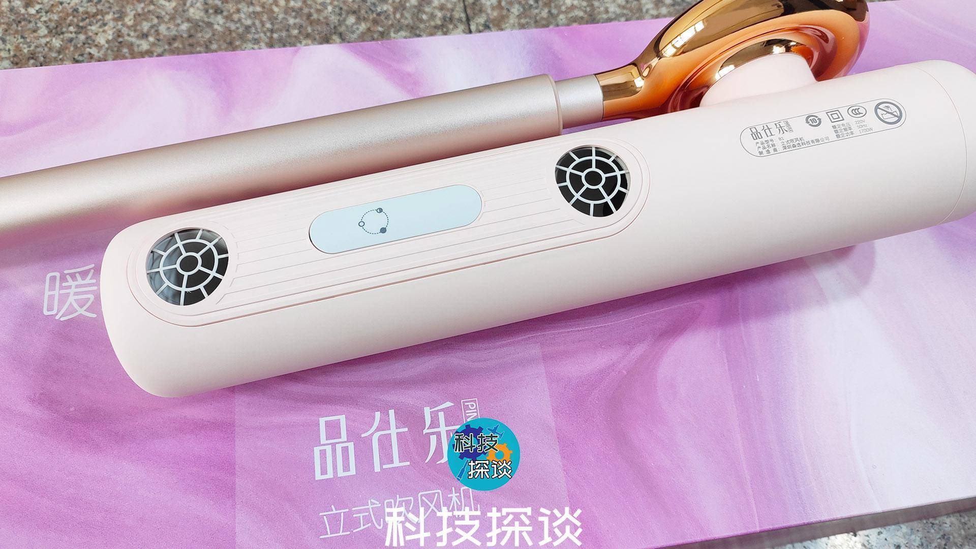 从说明书上可见,这款吹风机型号为B1,它采用模块化的设计方式,将整个立式吹风机拆分设计成几部分;从配色上看,品仕乐立式吹风机使用了比较活泼的樱花粉和那些年爱用的“土豪金”。