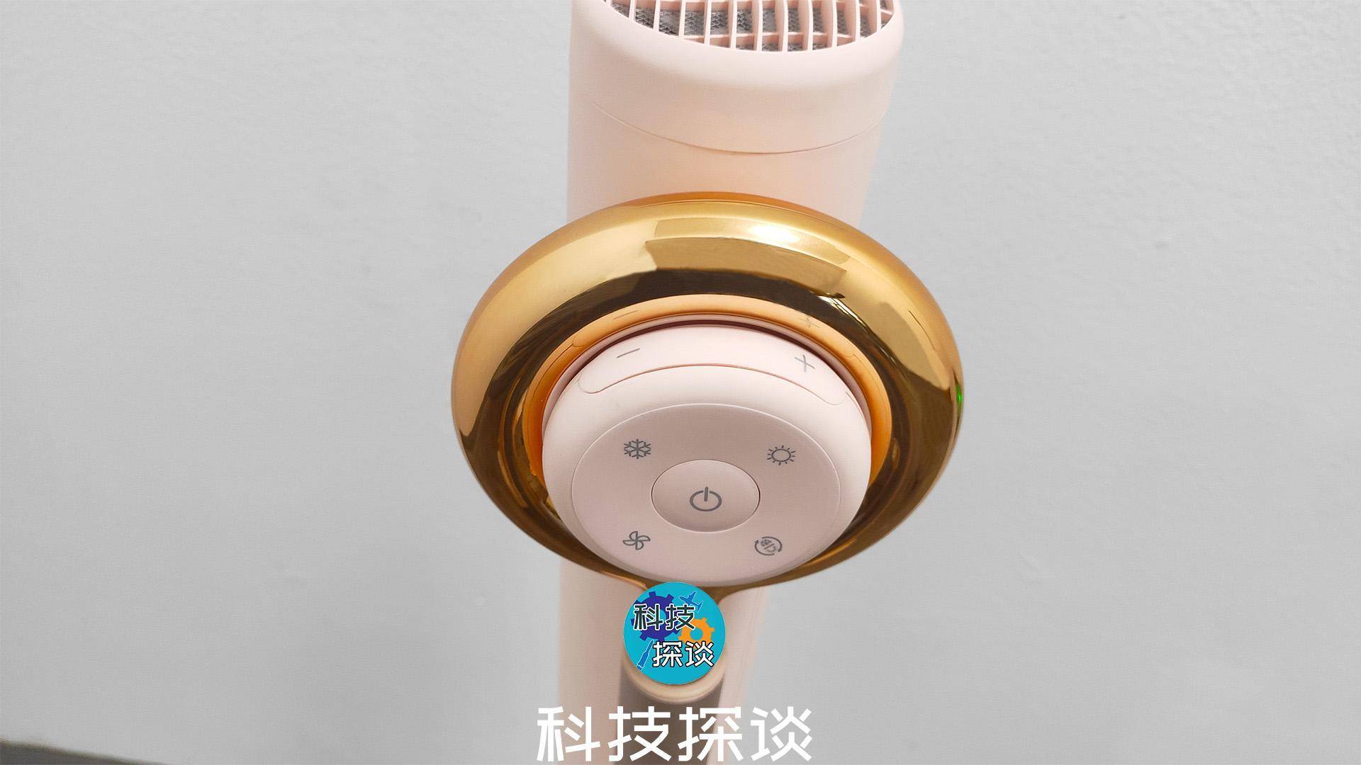 电吹风机的按压式开关位于机头前端,与尾部进风口相对,所有操作都在遥控器上进行。