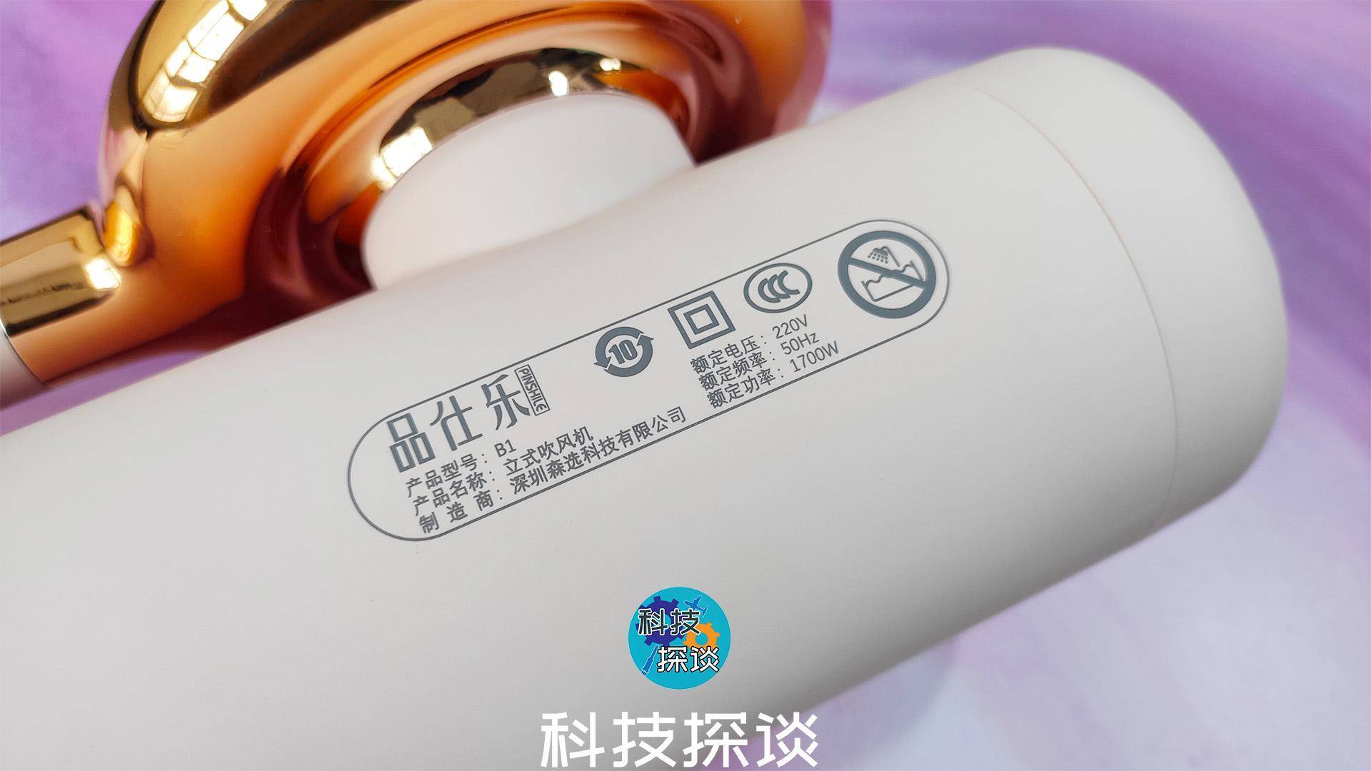 从吹风机的机头上可知,品仕乐立式吹风机的额定功率为1700W,比我平常家用的电吹风机要少300W,不过电吹风机吹出的热风好像也没多大差异。
