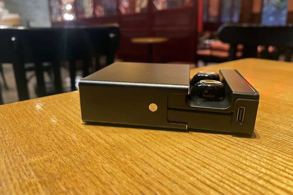 耳机充电仓跟包装盒一样,都是使用抽拉式的打开方式,并且还有一定的阻尼,实际体验下来十分好玩,要是上班无聊或者需要解压的时候可以当个玩具。