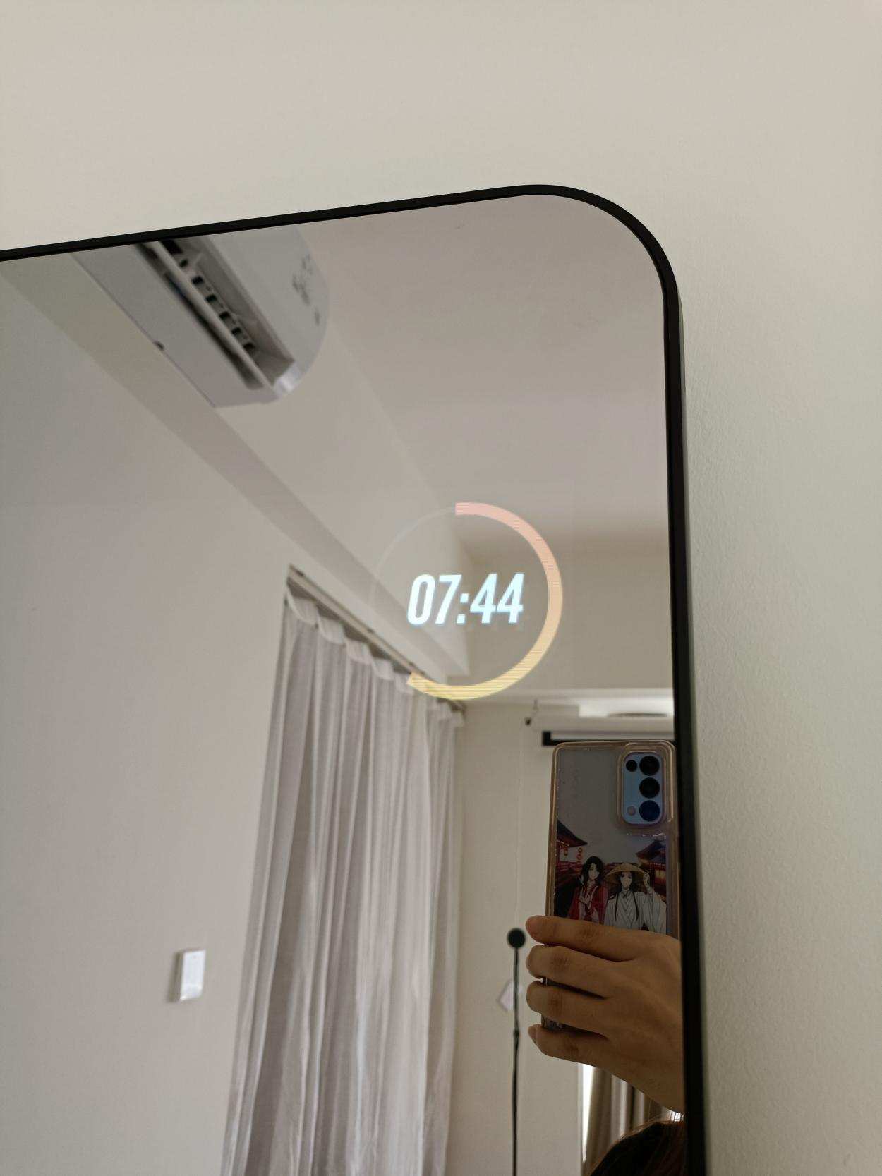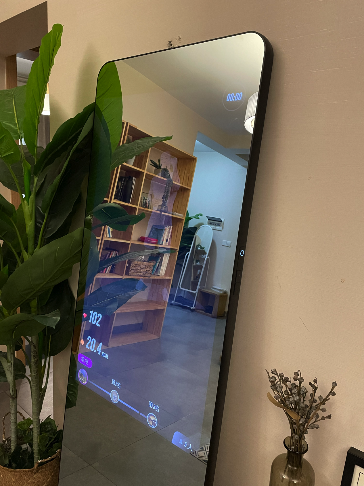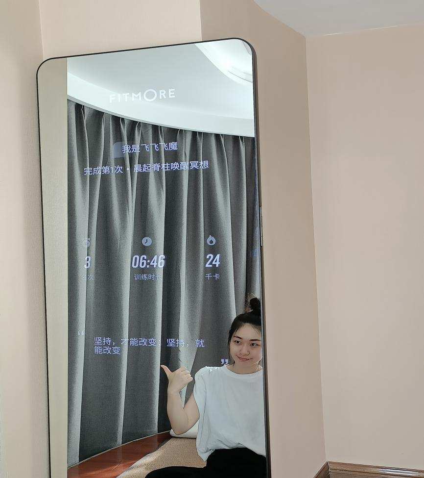 FITMOER智能健身镜四周为小圆角设计,让运动变得更加安全。镜子可以联系专业安装人员进行挂壁安装也可以靠墙安装,可以安装在阳台、卧室、客厅等地方,不占空间,带娃、健身两不误。
