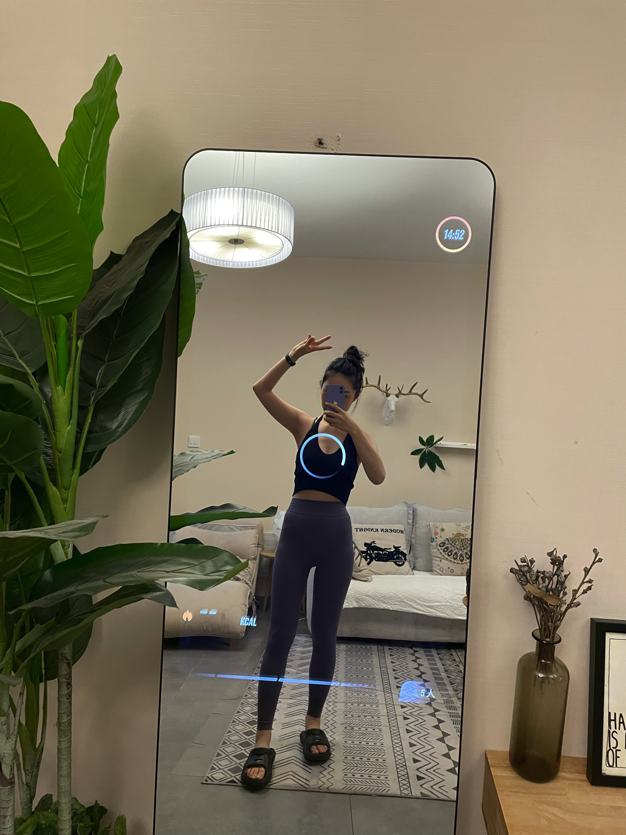 FITMOER智能健身镜大小为175*60*40mm,镜面厚度为3mm,边框为铝合金一体边框,金属质感,尽显精致,170度超广捕捉视角让运动区域更广。FITMOER智能健身镜关机时是一面镜子,开机时变成私人教练,不用时它就成为了装饰品。