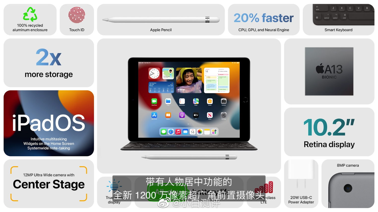 价格更低的iPad 2021款采用了A13芯片,虽然稍显老迈,但是老当益壮,也是风韵犹存。拥有支持原彩显示的10.2英寸视网膜显示屏和支持人物居中功能的1200万像素超广角前置摄像头,支持ApplePencil(第一代)和智能键盘,并配备操作直观的iPadOS,64GB起售价格为2499元。