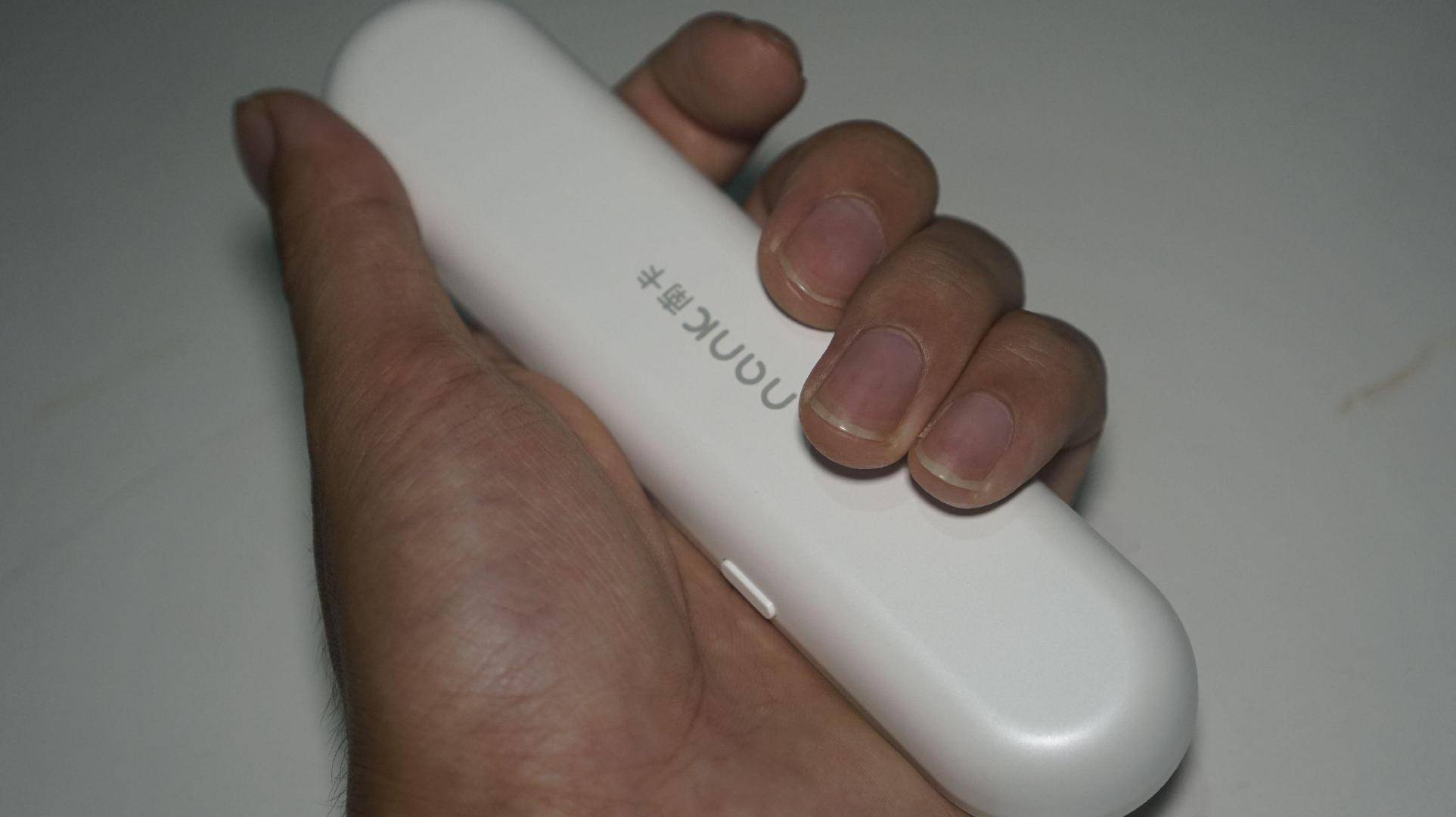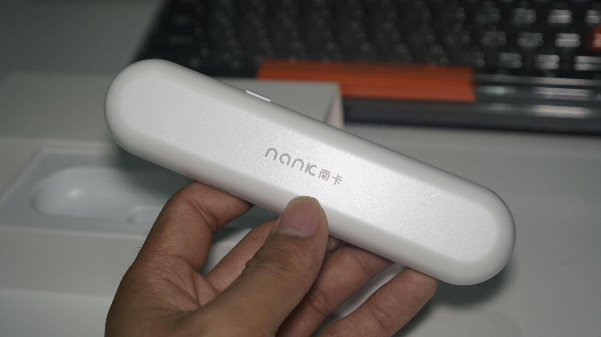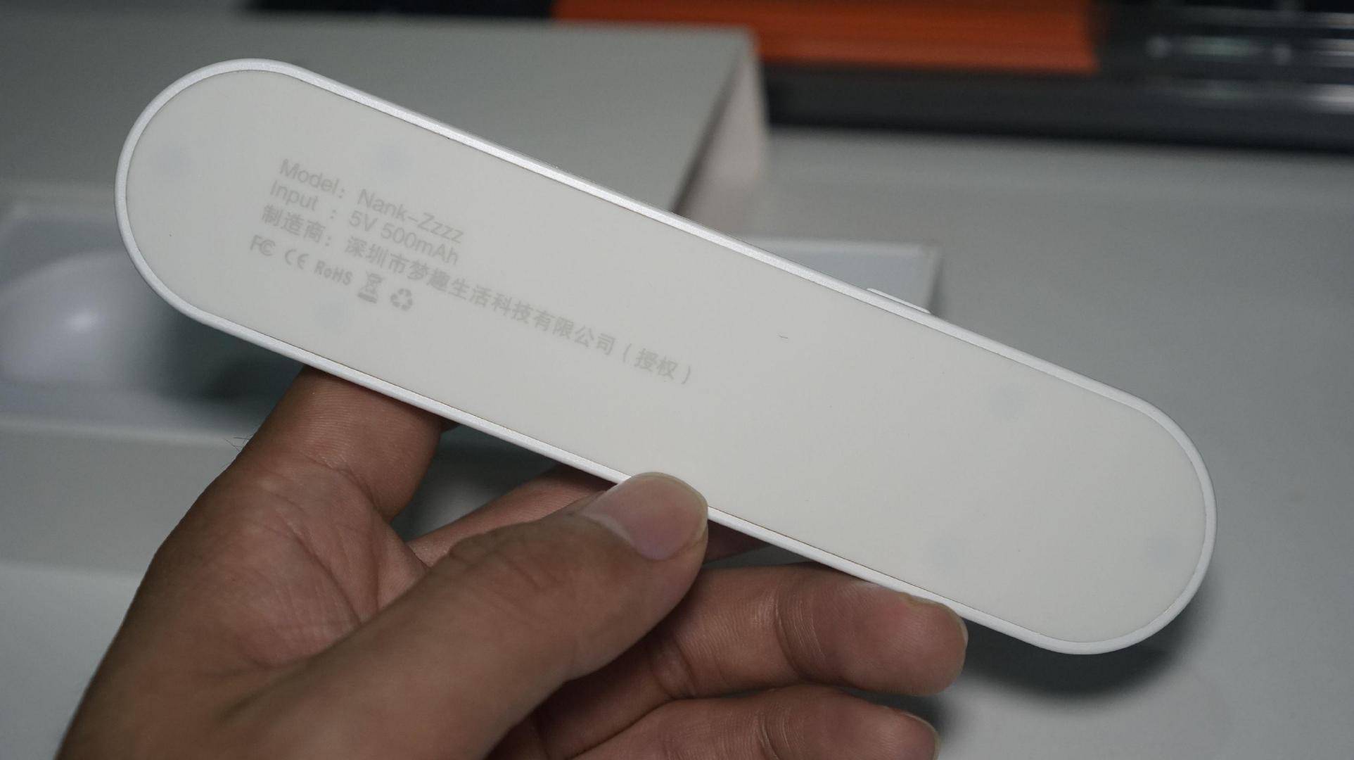 南卡枕中宝骨传导蓝牙音箱本体也是白色,微微泛着光,有点类似珠光白。形状有点像mini的铅笔盒。线条圆润,过渡自然,看上去非常的顺眼。拿在手上,触感也很舒服。微微磨砂的质感,不沾指纹。