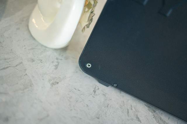 充电的位置隐藏在音箱背部角落,很好的隐藏电源线,不仅仅让我们桌面整洁美观,同时也让收纳变得更轻松。