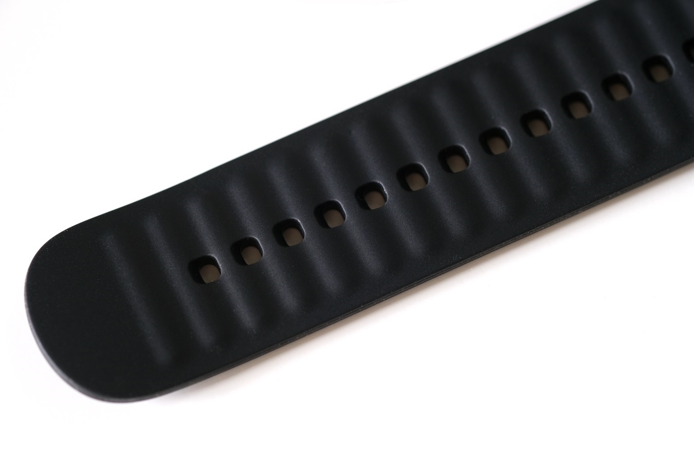 GTR 3依旧采用快拆式硅胶表带,但和GTR 2标配的硅胶表带相比,GTR 3的硅胶表带不仅更好看,而且佩戴更加透气舒适,因为它的正面加入斜纹装饰,而背面则像波浪面,更加透气。表带设有多个调节孔,适合绝大多数人的手腕,Amazfit已推出的多款表带适用于GTR 3,这里包括氟橡胶表带、牛皮表带。