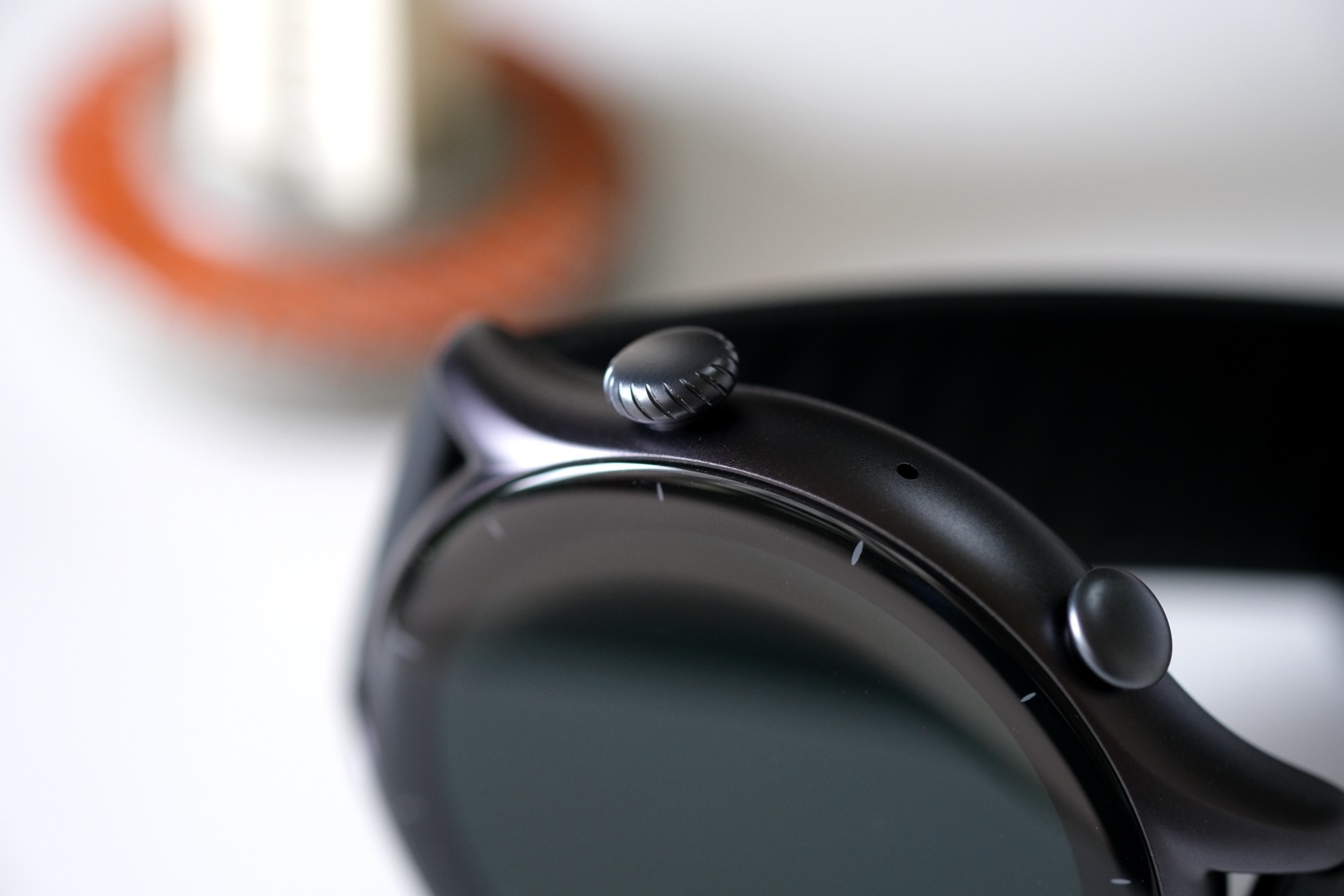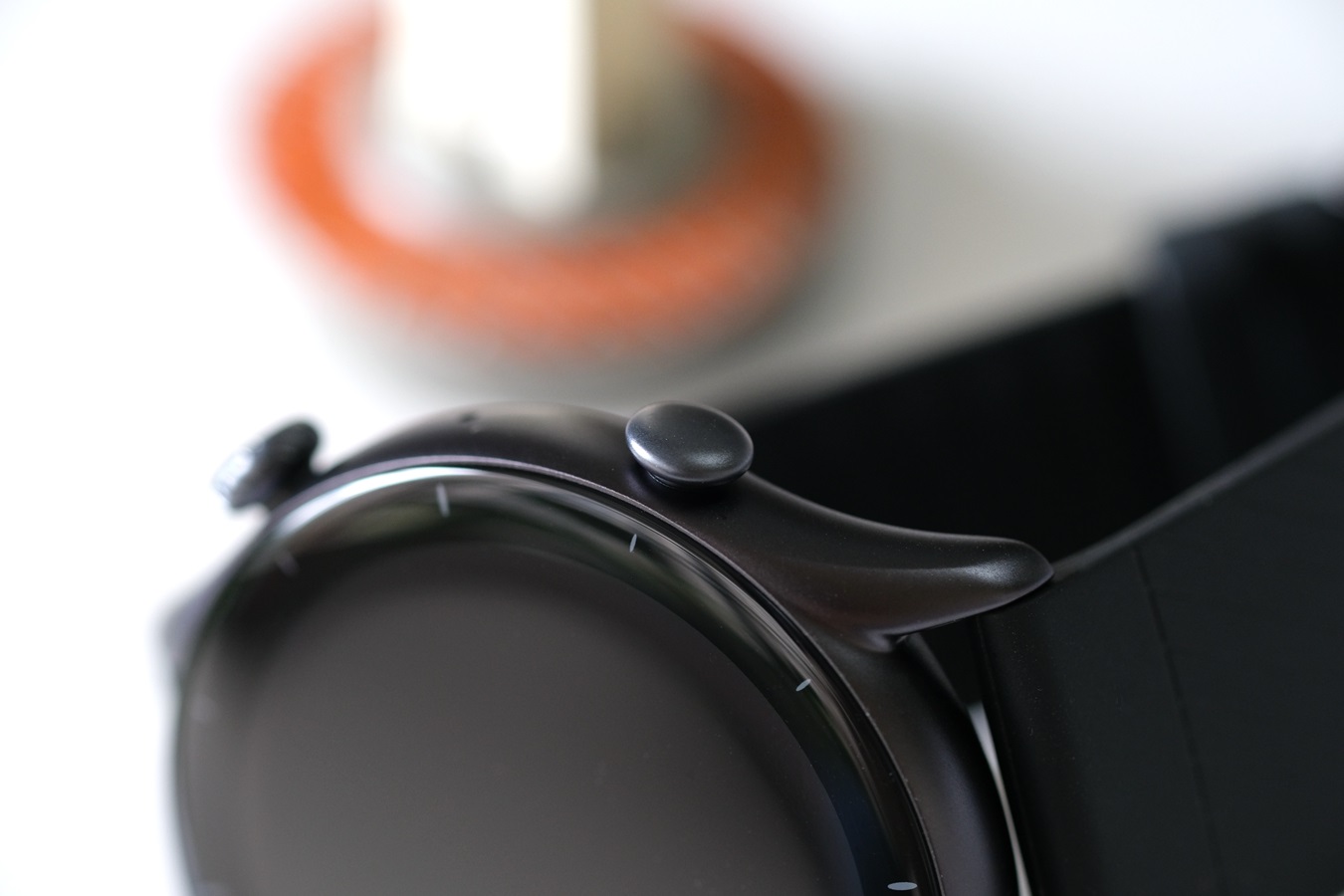 GTR 3和GTR 2一样在手表的右侧设有两个实体键,不过右上角由传统按键换成了表冠,被赋予更多的功能,除了长按默认是呼出语音助手、短按是返回主界面这两项操作外,还可以通过转动旋钮来实现菜单的浏览,配合线性马达的反馈,给用户带来更加便捷的操控体验。