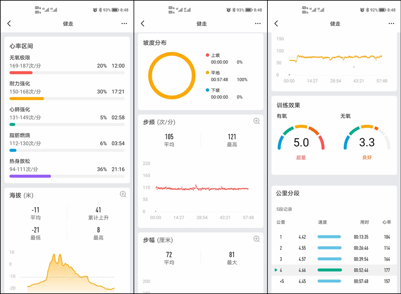 运动结束后,可以直接在手表上查看各种运动记录,而且非常的详细,户外运动还可以直接查看运动轨迹。当然了,同步到手机APP里再查看,会更加的详细和直观。