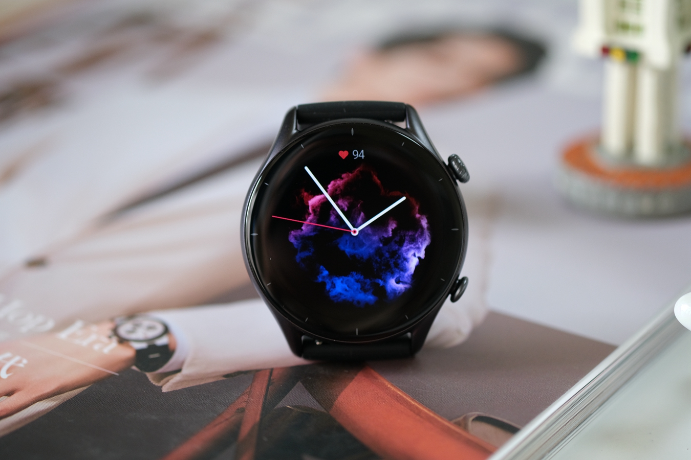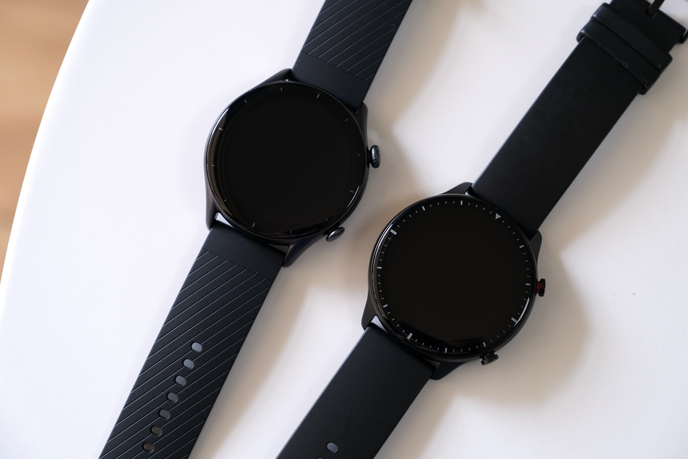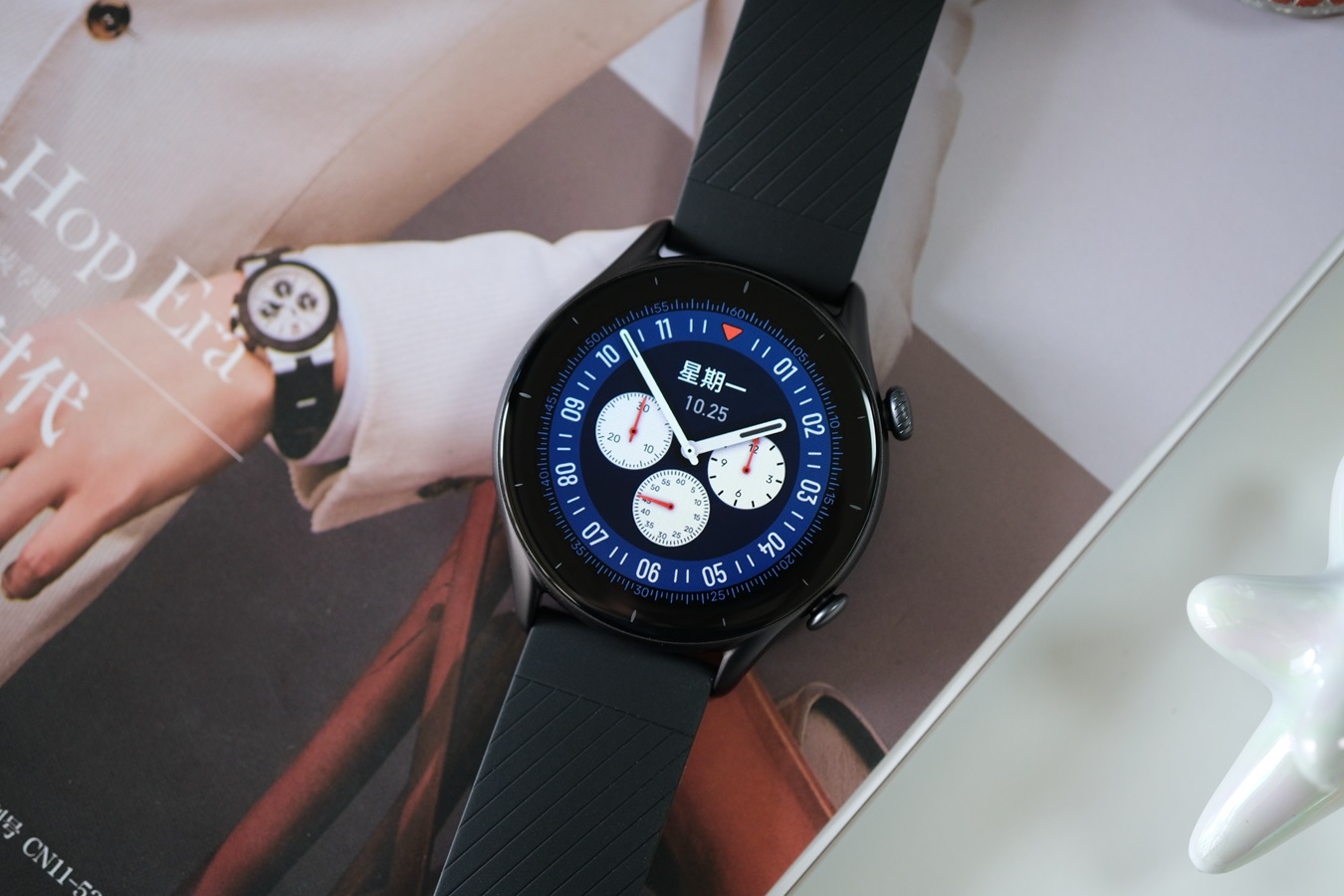 GTR 3的厚度为10.8mm,重量为32克,跟GTR 2几乎没有差别。此外,GTR 3还推出了Pro版本,大小与重量和GTR 3相差不大,但屏占比更高,配备的是1.45英寸的屏幕,功能也更全一些,如果要追求屏幕更大一些,GTR 3 Pro会更“香”。