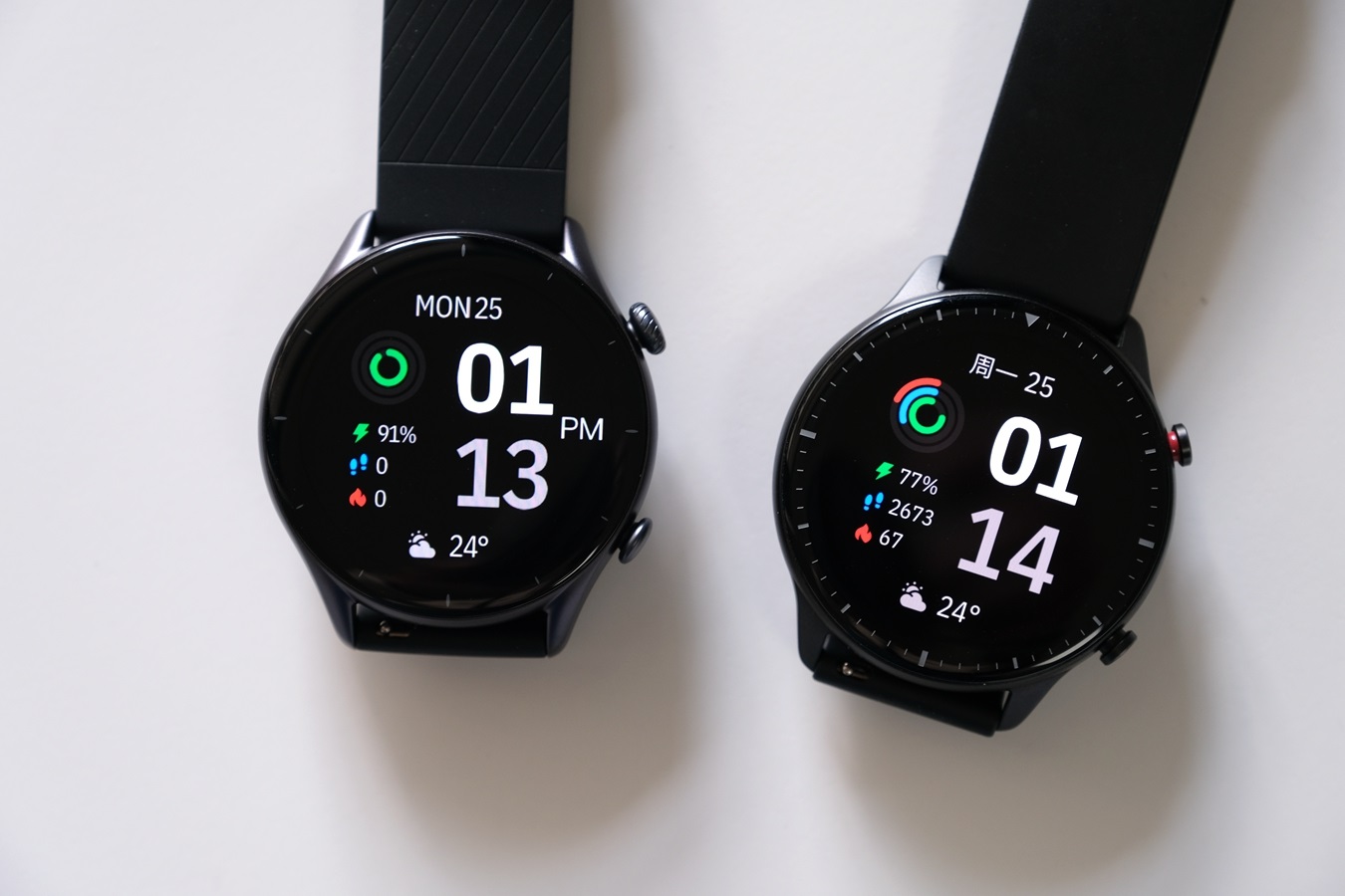 两者的屏幕尺寸和分辨率是相同的,但是直觉GTR 2好像会大一些,这是GTR 2的表盘直径比GTR 3稍稍大一点儿引起的错觉。