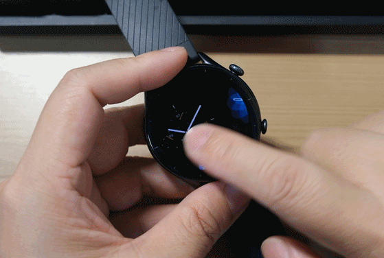GTR 3的外观设计延续了GTR 2的无边界设计理念,而且表盘的边框比GTR 2更窄,同样是配备1.39英寸的屏幕,GTR 2表盘直径为46.4mm,而GTR 3则减至45.8mm,虽然这差别仅0.6mm,但是两者摆放在一起,还是能一眼分辨出来,像我这种手腕不粗的人来说,自然会更偏爱佩戴GTR 3了。