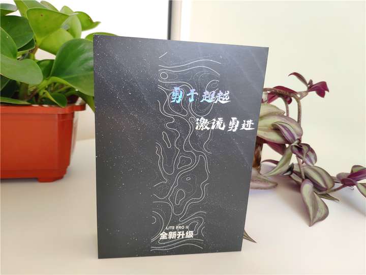 拉开外包装的盒,内部还有一个包装盒,正面印有:“勇于超越,激流勇进”八个大字,突出此次产品全新升级,给用户更好地体验。