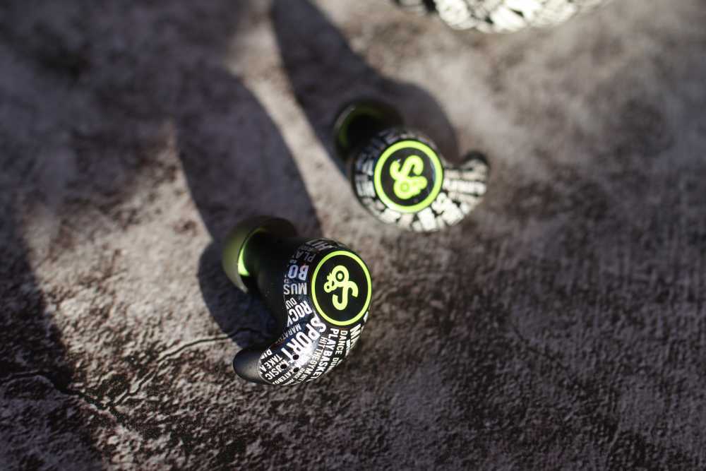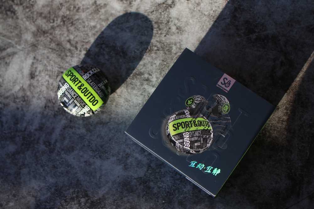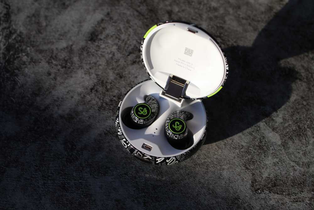 全身是sport等英文字母的logo,黑色的主体颜色搭配上绿色的拼撞没有任何违和感。耳机的开盖方式上也是别出心裁,采用了一个钻石切割镜面弹出式的按键,按动会自动弹出,仪式感非常足。