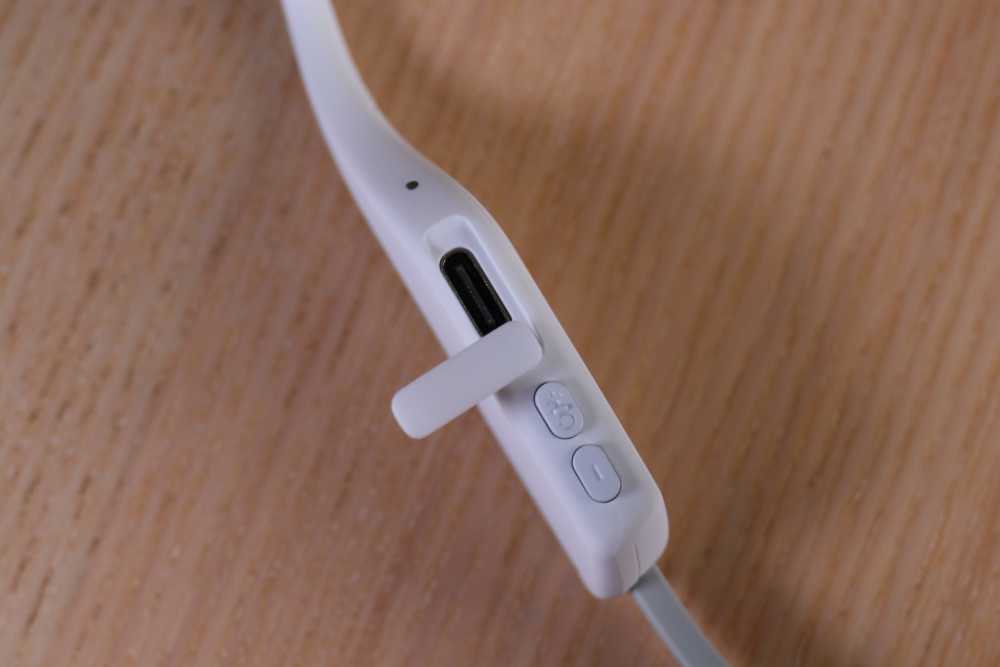 耳机骨架采用的是高强度的钛合金,扭曲拉伸不会变形,过万次的往复测试,日常使用起来不用担心寿命问题。类肤质的一个设计,重量26g触摸起来也会很舒服,也不会看起来和塑料一样很劣质,人体工学的支撑设计,佩戴起来舒服稳定,不过不是紧密贴合的佩戴方式,对强迫症的用户不是很友好。