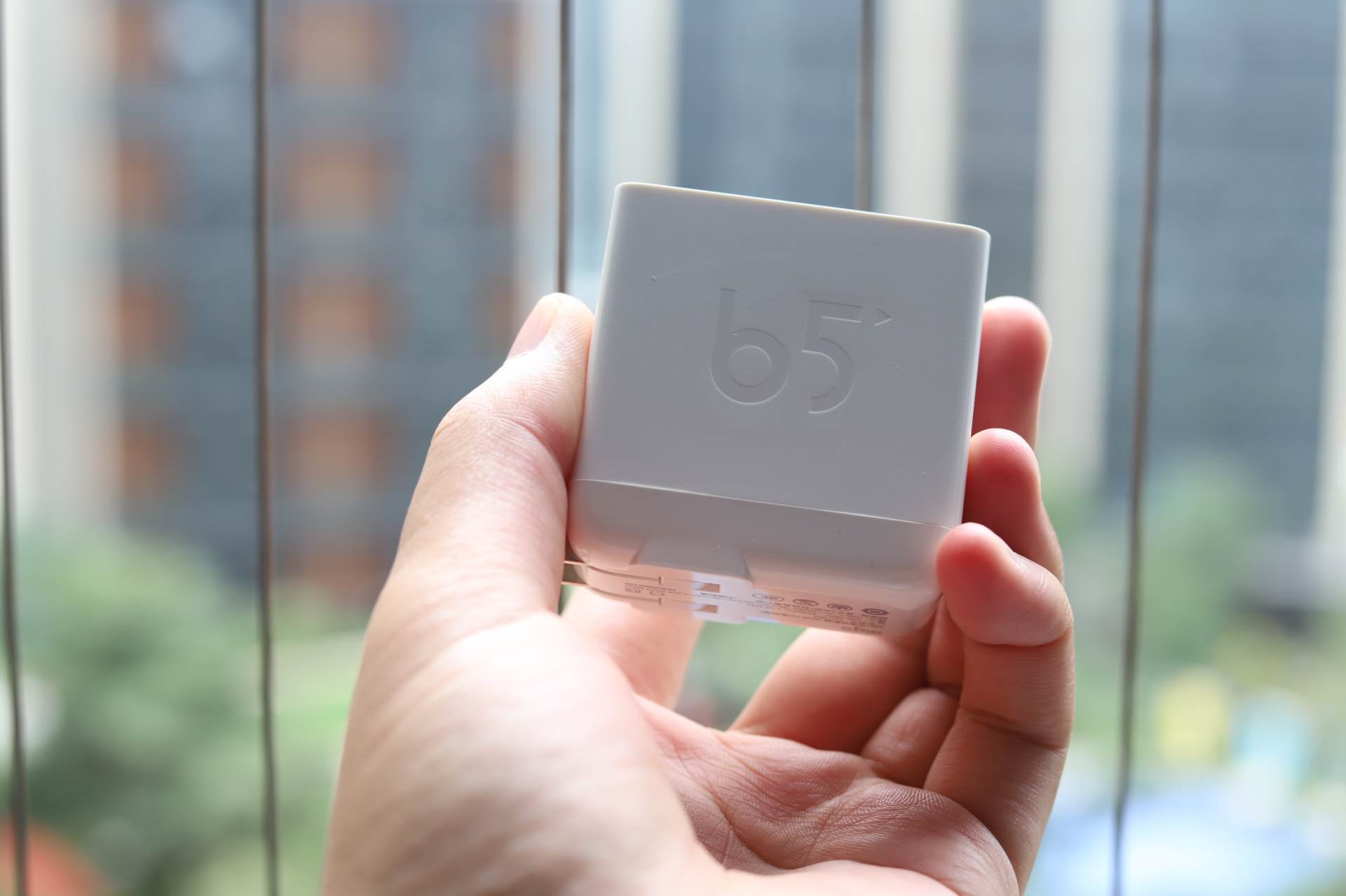 当然,对于旅行达人来讲产品的性能是一方面,产品的尺寸以及重量也是同等重要的。根据实际测量aigo 65W PD充电头的长宽高分别为56*55*29mm,可以说设计的非常紧凑了,同时aigo 还人性化地将插脚进行了折叠设计,让产品的体积大幅度的减小,减少了不必要的空间占用,非常的用心。重量方面仅有117g,相比于同等功率下的充电头来说已经设计得非常的轻盈了,更加方便差旅人员外出携带。