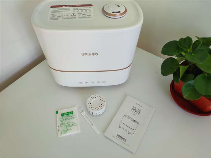 出厂全部配件:加湿器、滤芯、除垢剂、清洁刷和产品使用说明书。加湿器用久了,水槽和水箱内难免会出现水垢,后期清理起来比较麻烦,厂家贴心为用户配备一包柠檬酸除垢剂和毛刷,清理加湿器就方便了很多。