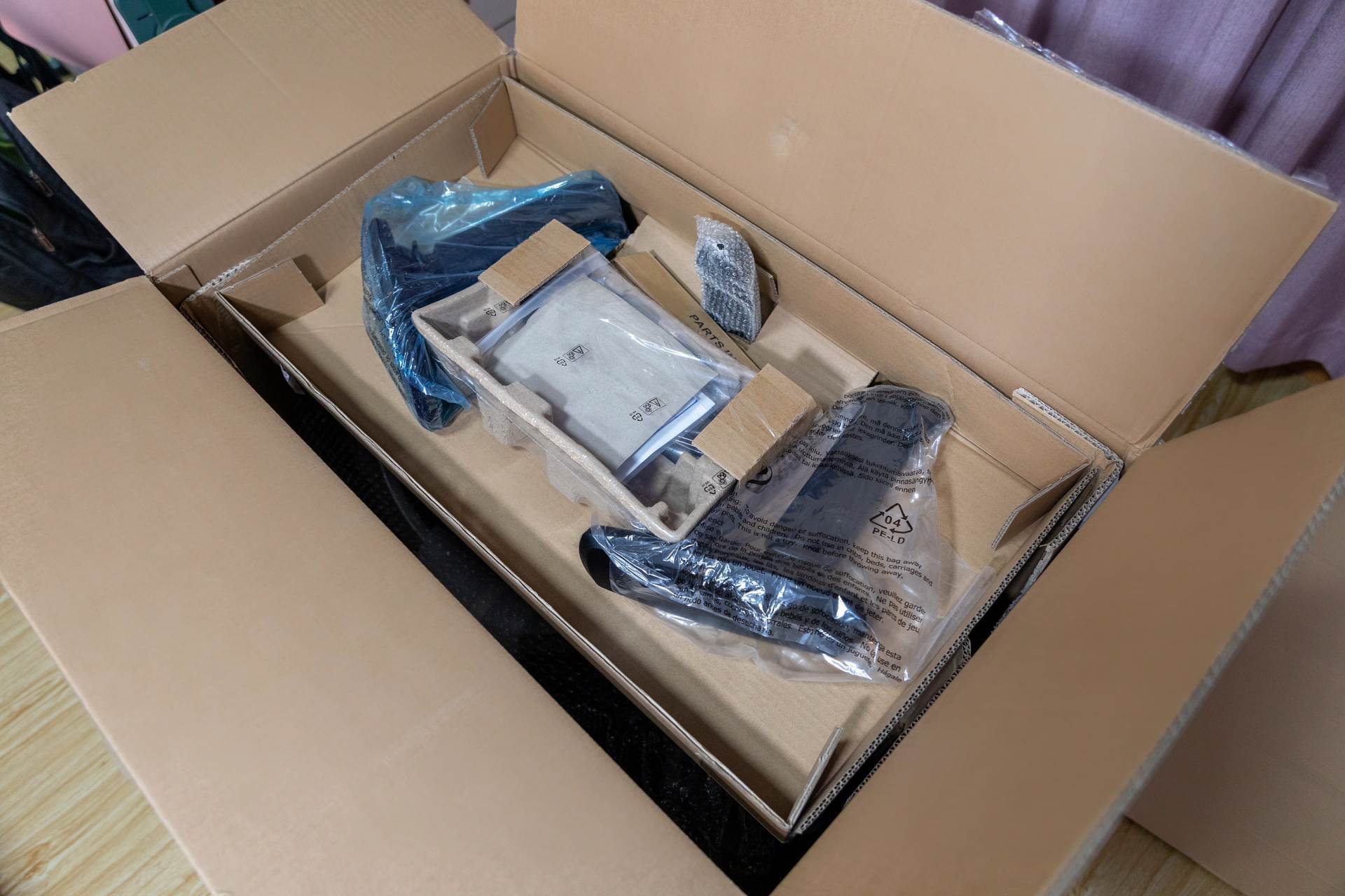 四四方方的大纸箱,幸好有快递小哥帮我抬上楼,因为这款椅子光净重就达19.2KG,再加上外包箱,体积实在是太大了,我这大男人也抱它不住,两人抬着都略显费劲。
