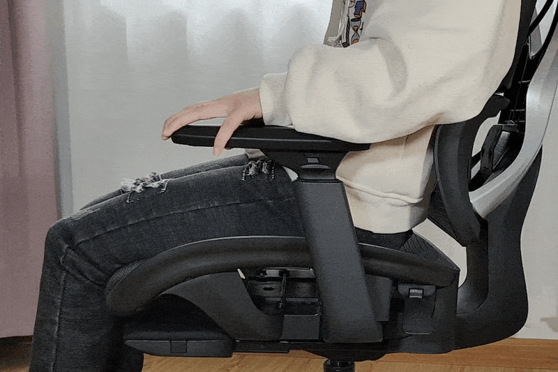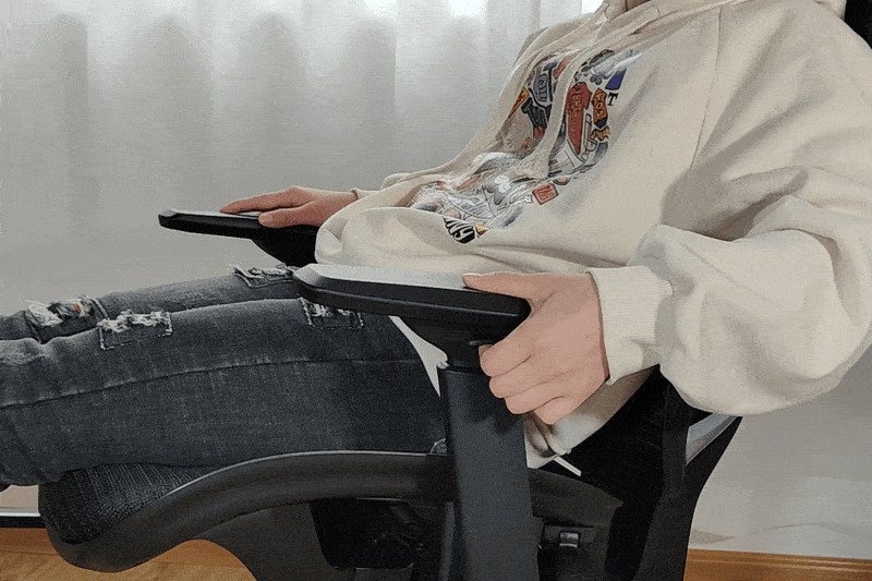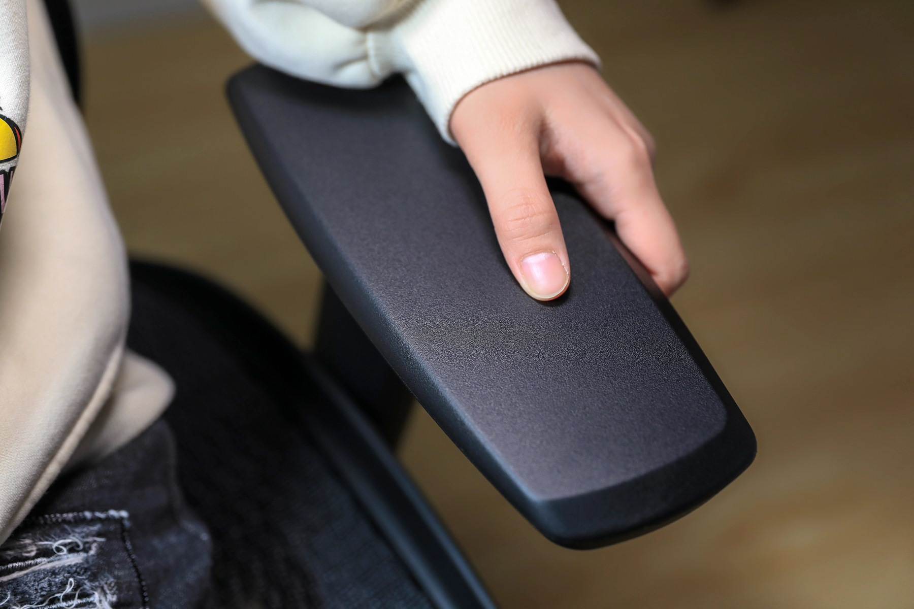 普通的椅子没办法调节,仿佛坐在宝宝椅里面一样,有种束缚感。这款椅子采用的是3D立体扶手,有15度内外调整的功能。